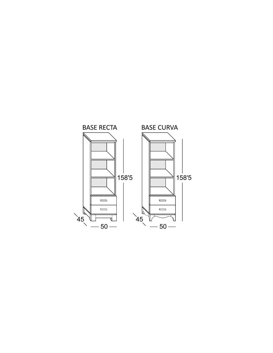 Este estantería baja con cajones tiene las siguientes medidas (alto x largo x fondo en cm.): 158,5 x 50 x 45.