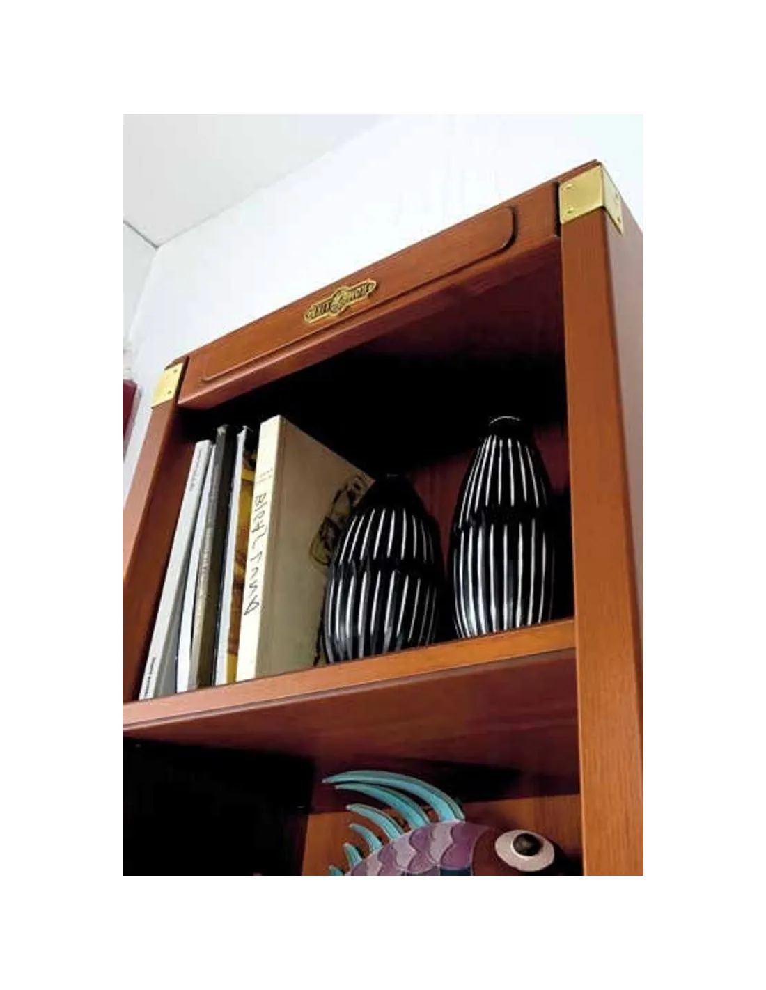 Esta librería madera maciza con puertas tiene unos acabados pulimentados y barnizados de primera calidad, con la posibilidad de elegir entre blanco decapado, nogal claro y nogal naútico, con los detalles del mueble y herrajes de latón pulido.