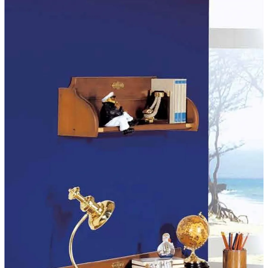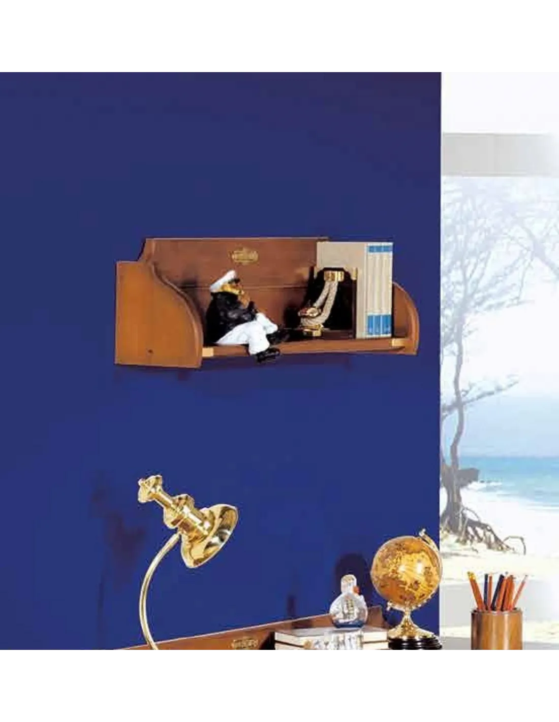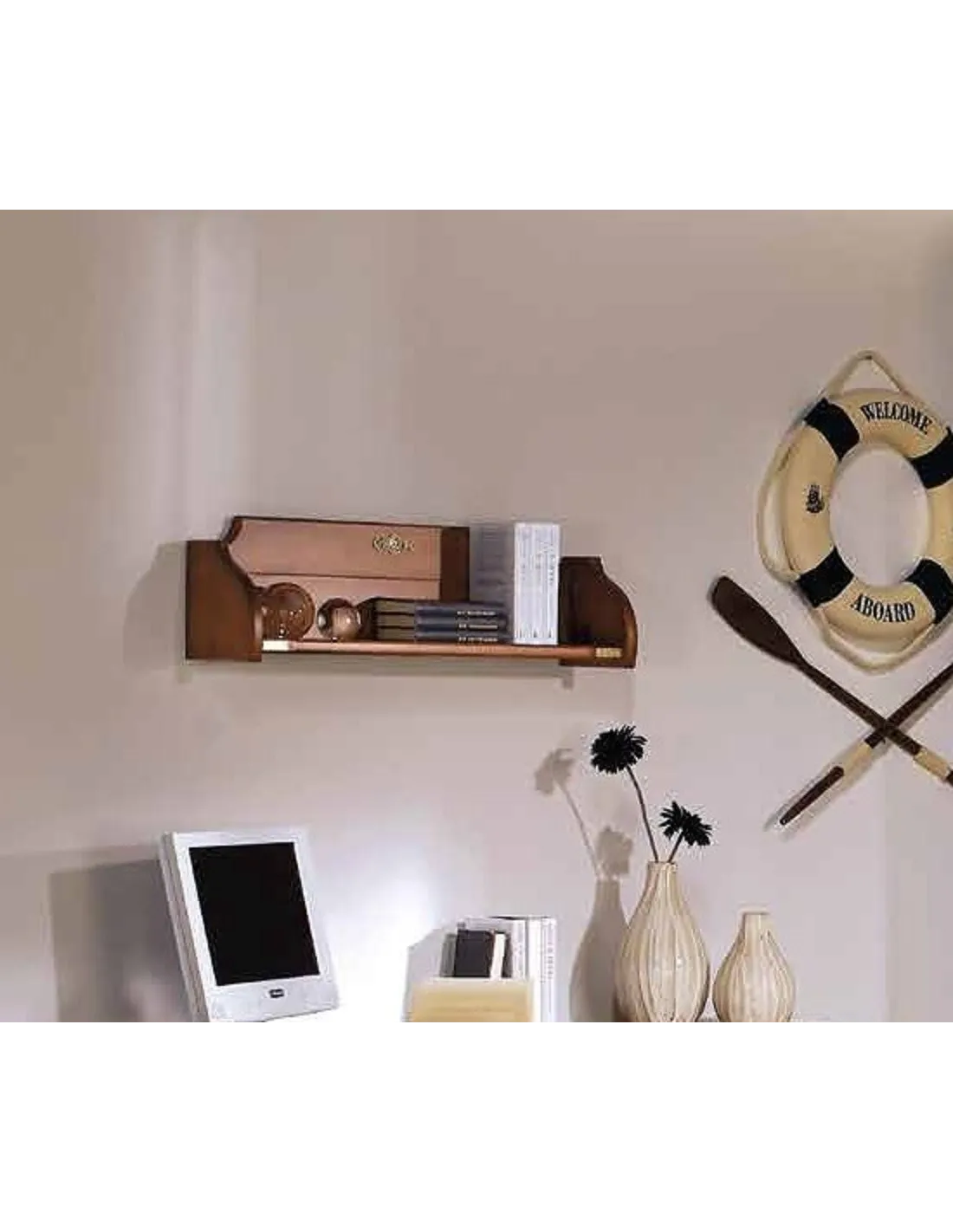 Esta repisa de pared tiene unos acabados pulimentados y barnizados de primera calidad, con la posibilidad de elegir entre blanco decapado, nogal claro y nogal naútico, con los detalles del mueble y herrajes de latón pulido.