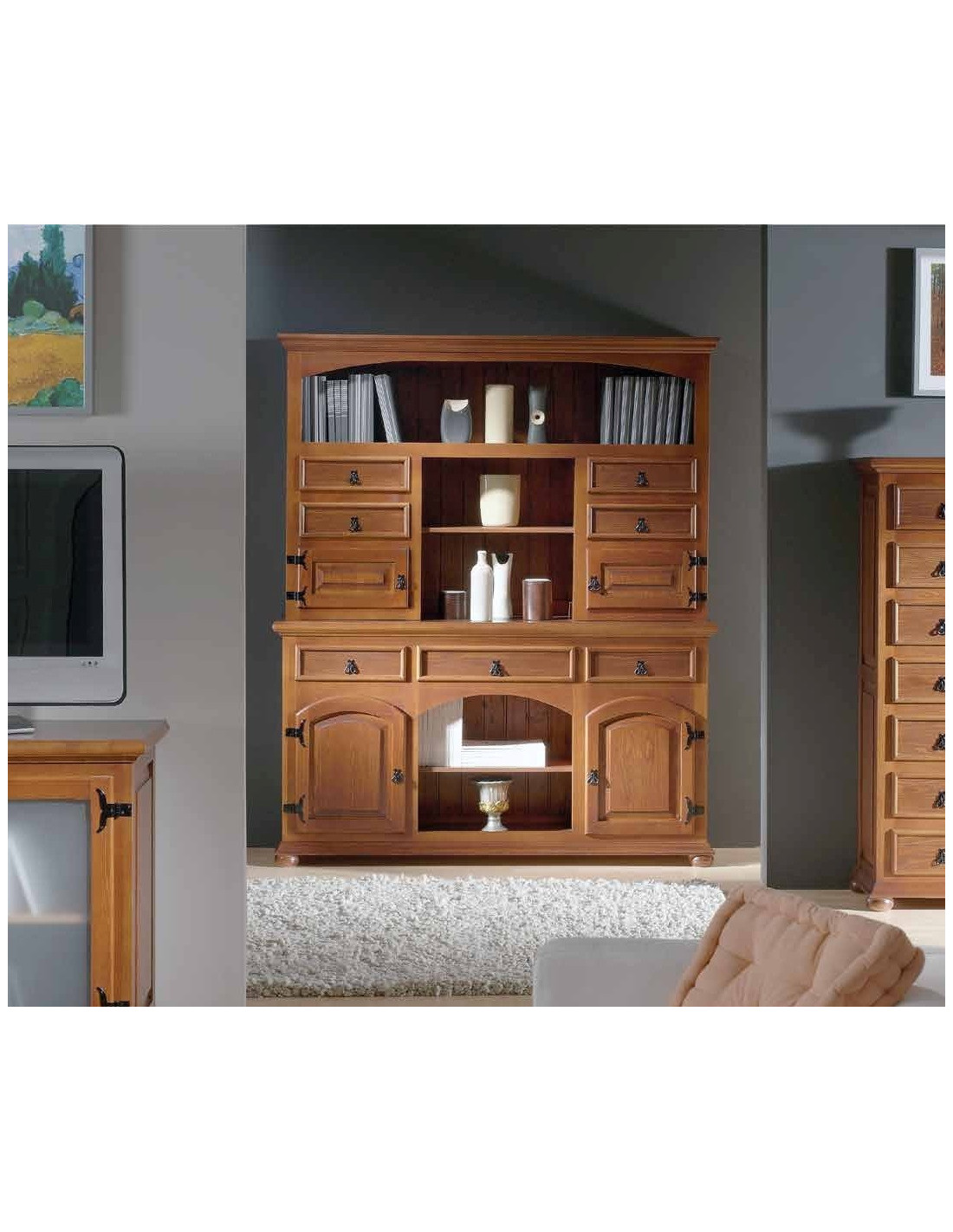 - Librero colonial: 167 x 201 x 43 cm.