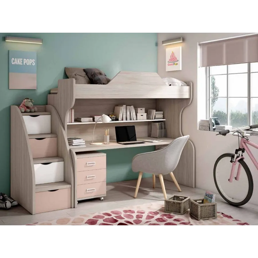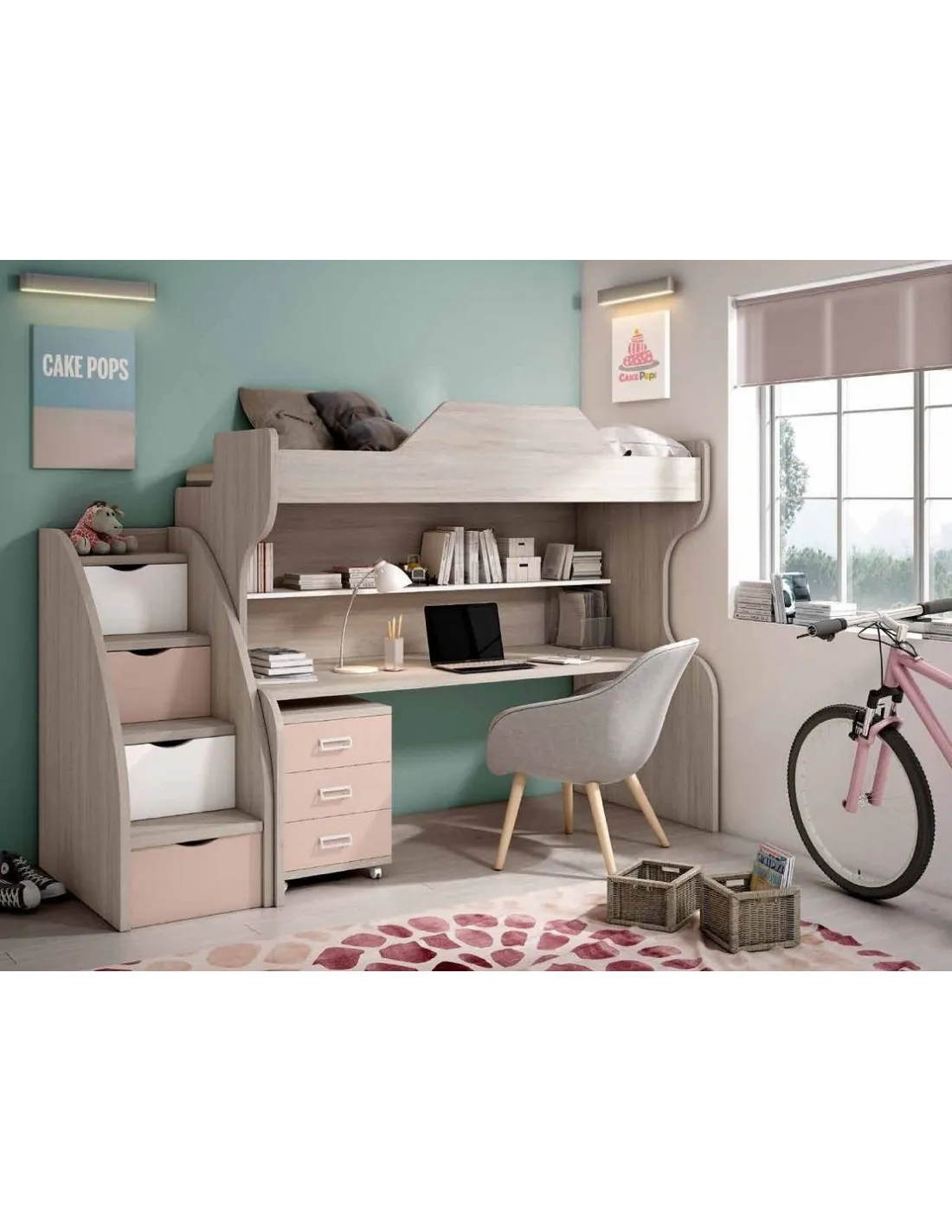 Litera con escalera de puertas / cajones y escritorio incorporado