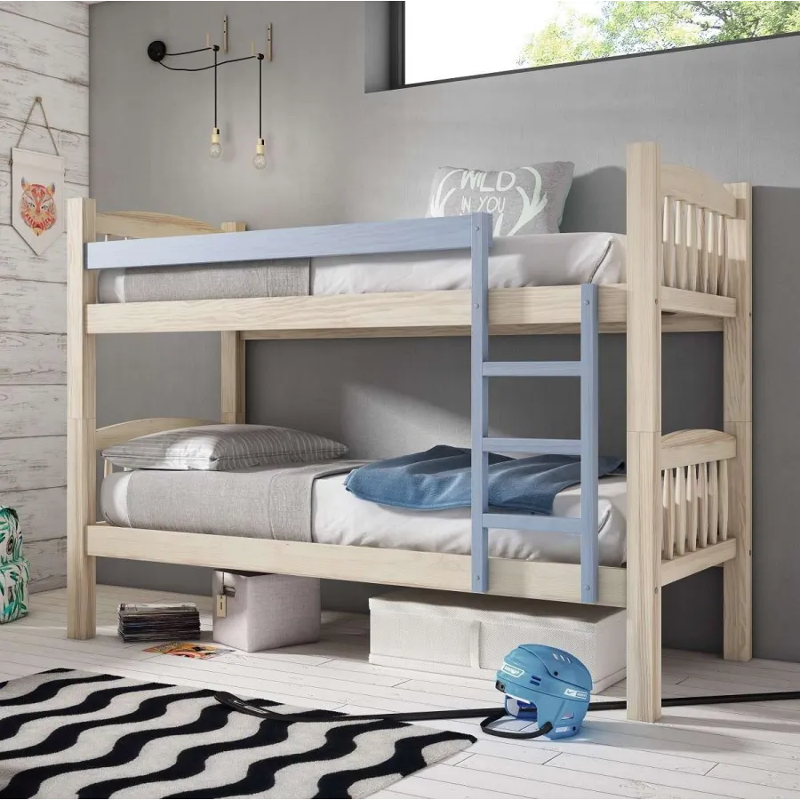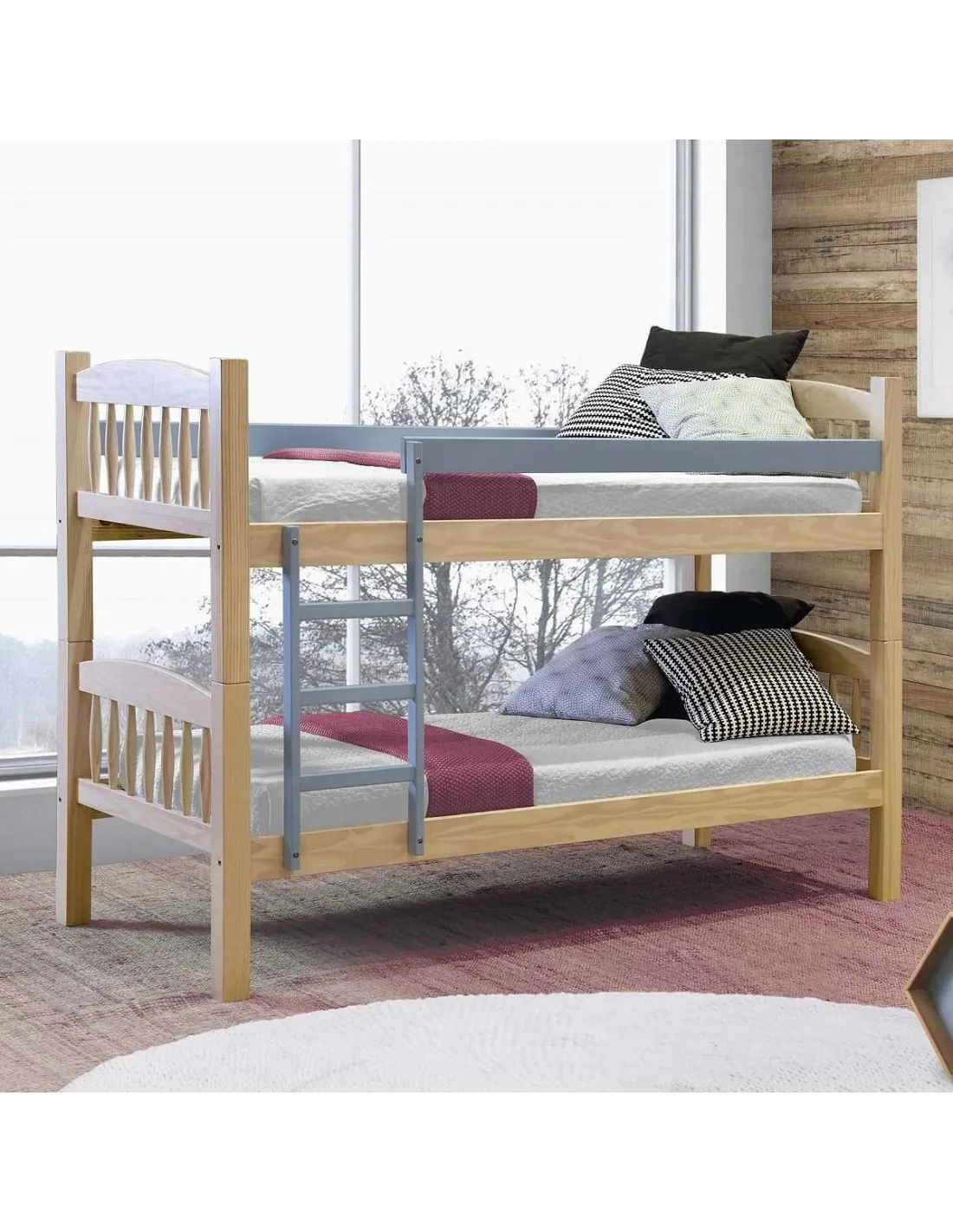 Tanto la estructura de estos muebles como los interiores están fabricados en su totalidad con madera de pino maciza de primera calidad. Estas camas incluyen el somier de lamas de madera.