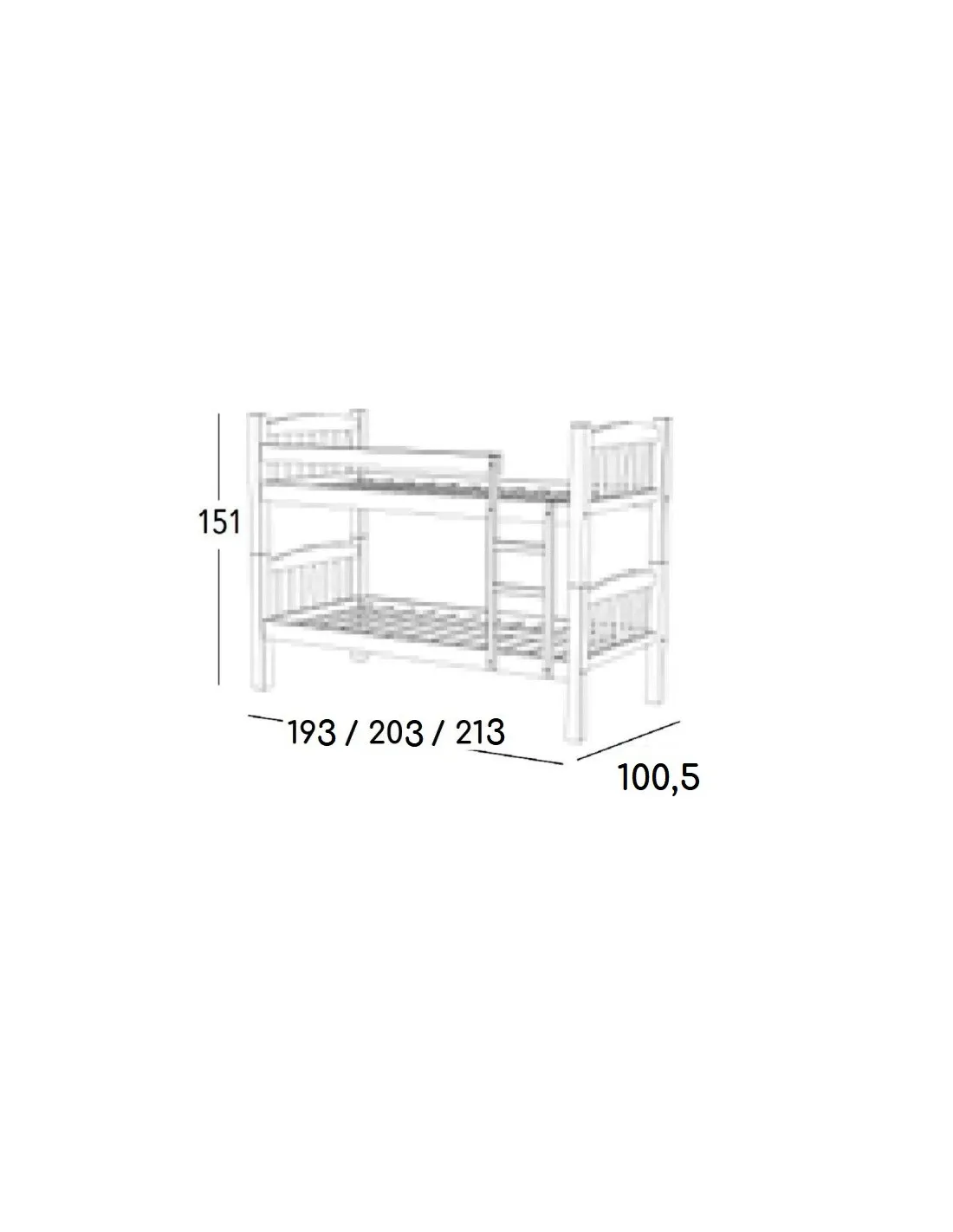 Esta litera Nova 90 colonial está compuesta por dos camas con escalera, y tienen la posibilidad de usarse como dos camas independiente. Vienen disponibles para colchones de largo variable (180 / 190 / 200 cm.) y de ancho 90 cm., y tienen las siguientes medidas totales en cm.:
