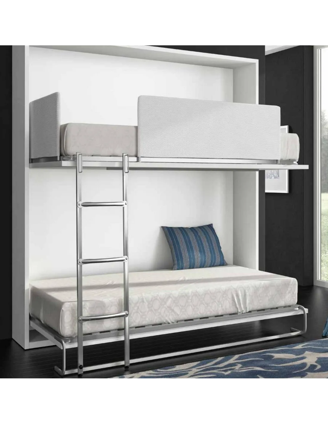 Calidad y diseño: las camas de esta colección son indelaes para mantener una habitación ordenada y un gran espacio libre durante el día, creando ambientes abiertos y adaptables perfectamente a cualquier estancia, con especial utilidad en el caso de dormitorios de pqueñas dimensiones o estudios de habitación única.
