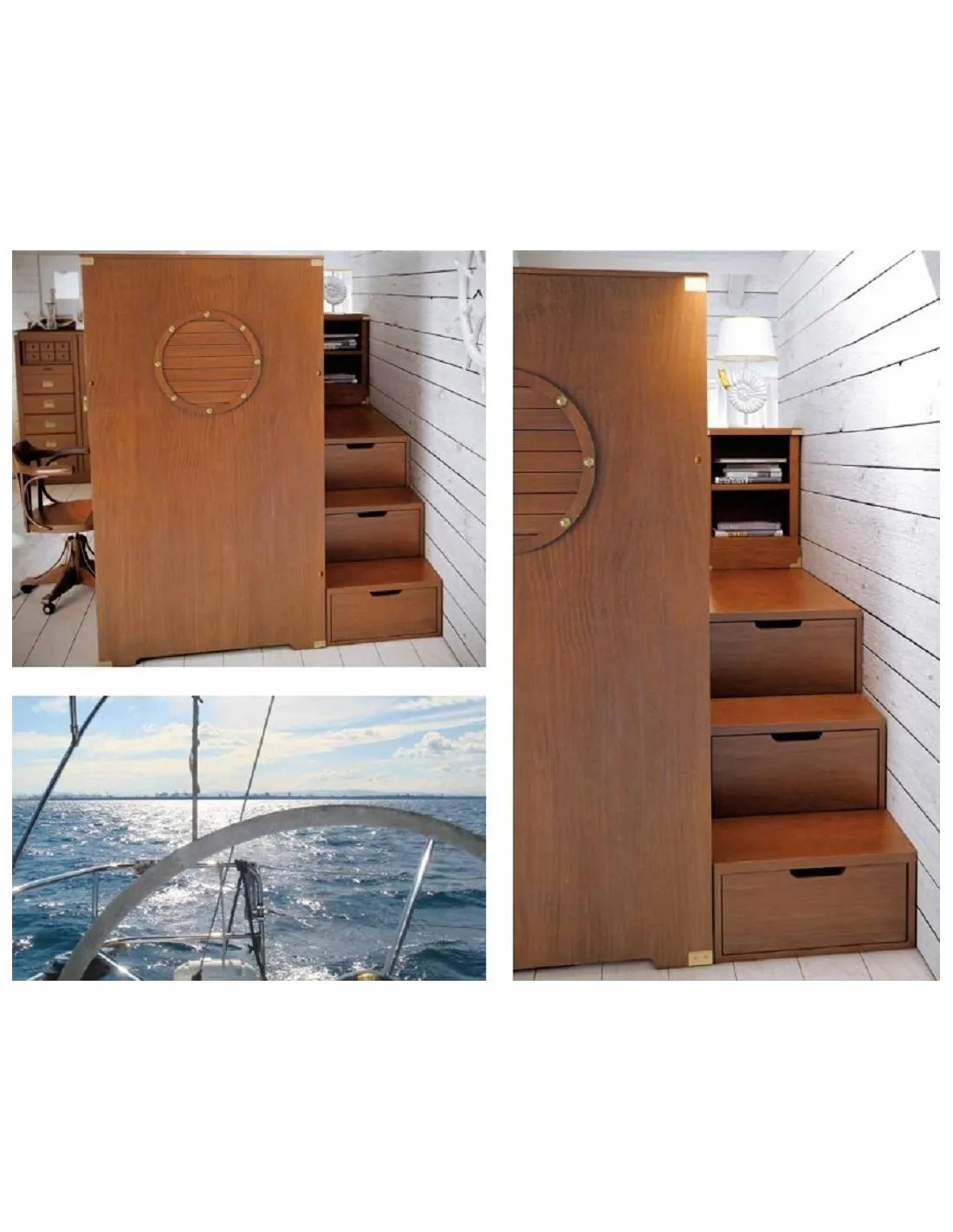 Diseño tomado de los barcos que marcaron época y confeccionados en madera noble de Fresno, adornados con herrajes de latón pulido y la funcionalidad de un estilo de vida contemporáneo.