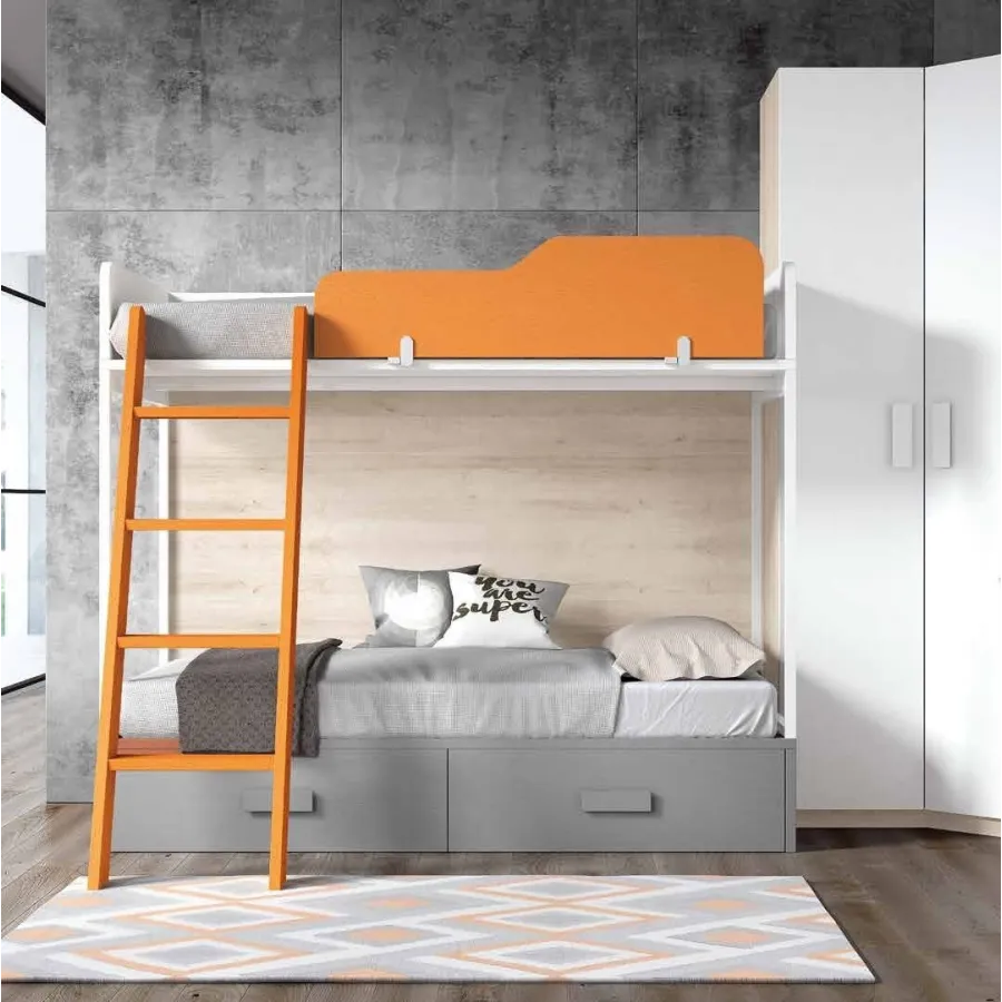 El mismo modelo de litera se puede encargar con un módulo de 2 / 3 / 4 cajones con gruía metálica y cierre amortiguado.