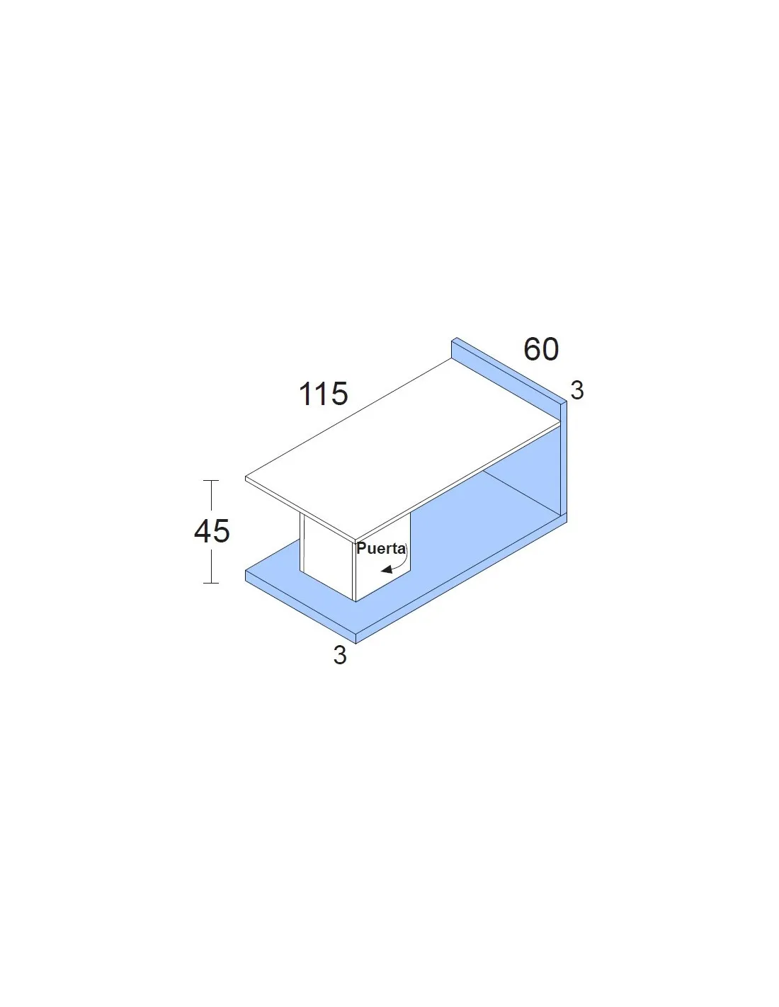Esta mesa de centro Cubo viene con las siguientes medidas en largo x alto x fondo (en cm.): 115 x 45 x 60.