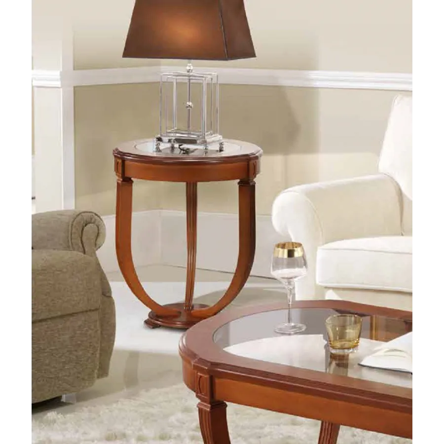 Mesa velador de diseño clásico con moldura.