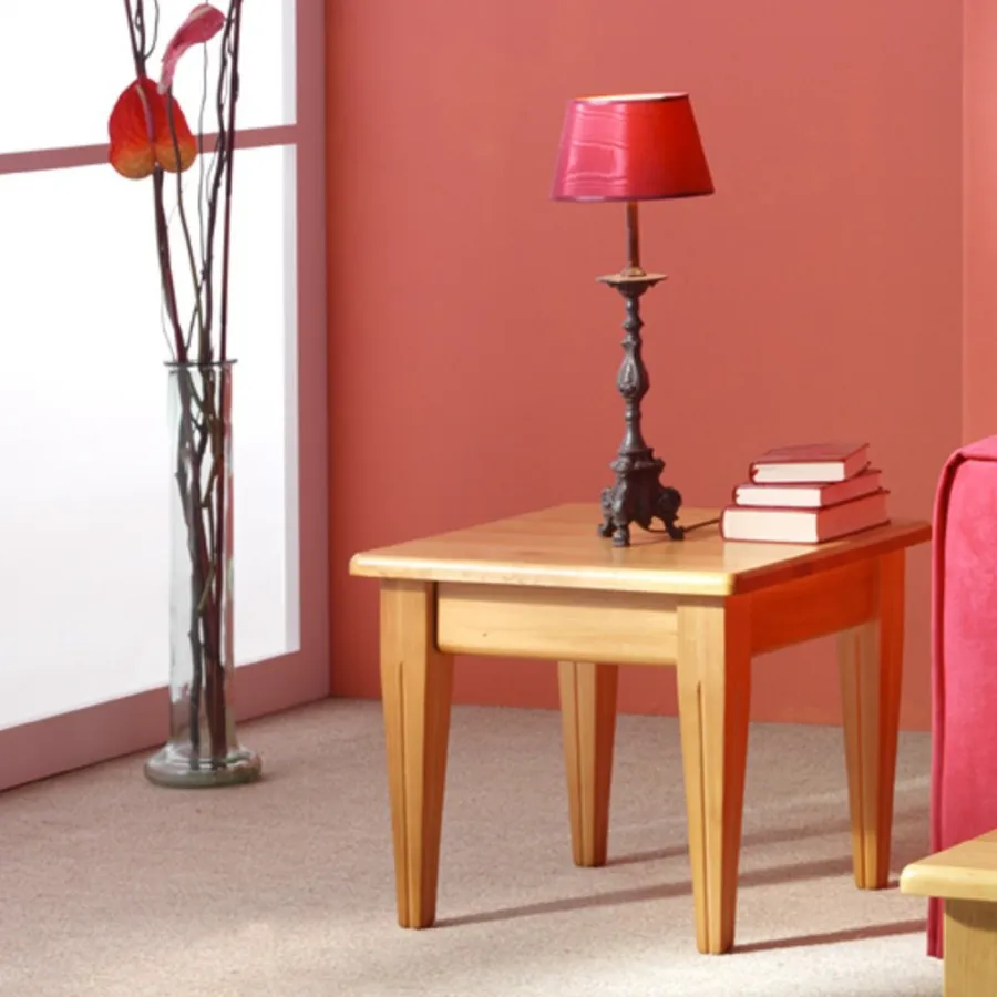 Mesita auxiliar cuadrada de diseño clásico hecha en madera de pino modelo Maya Provenza