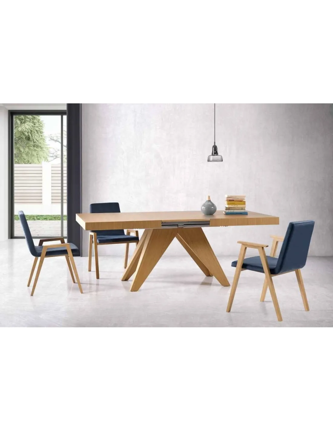 La mesa extensible Bou cuenta con 150 cm. de largo ampliables en 3 tramos independientes de 50 cm. cada uno, con lo que podemos conseguir una mesa cerrada en 150 cm. que se abre a 200, 250 o 300 cm. según las necesidades del momento.