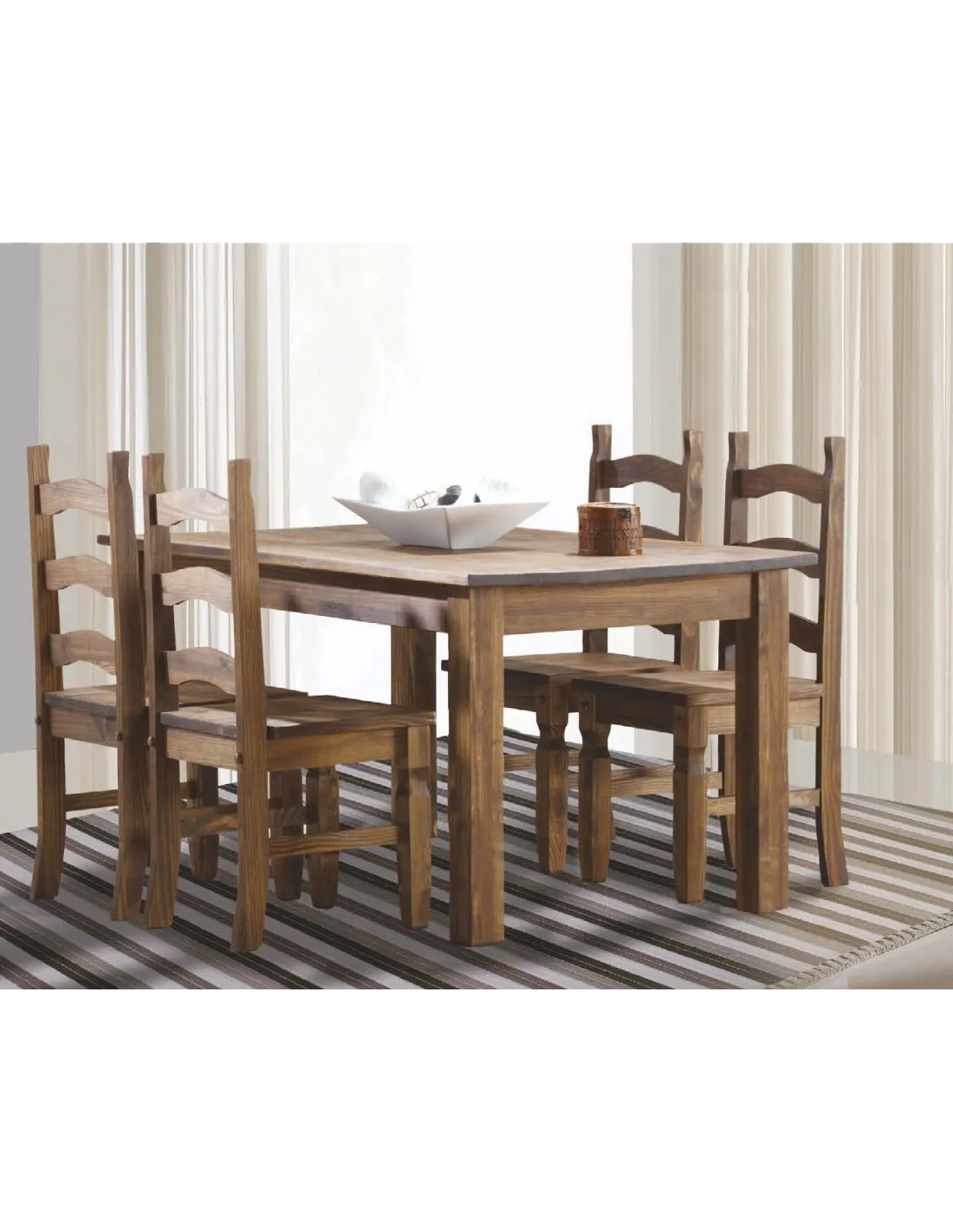 Este conjunto de comedor rústico consta de las siguientes medidas en largo x alto x fondo: