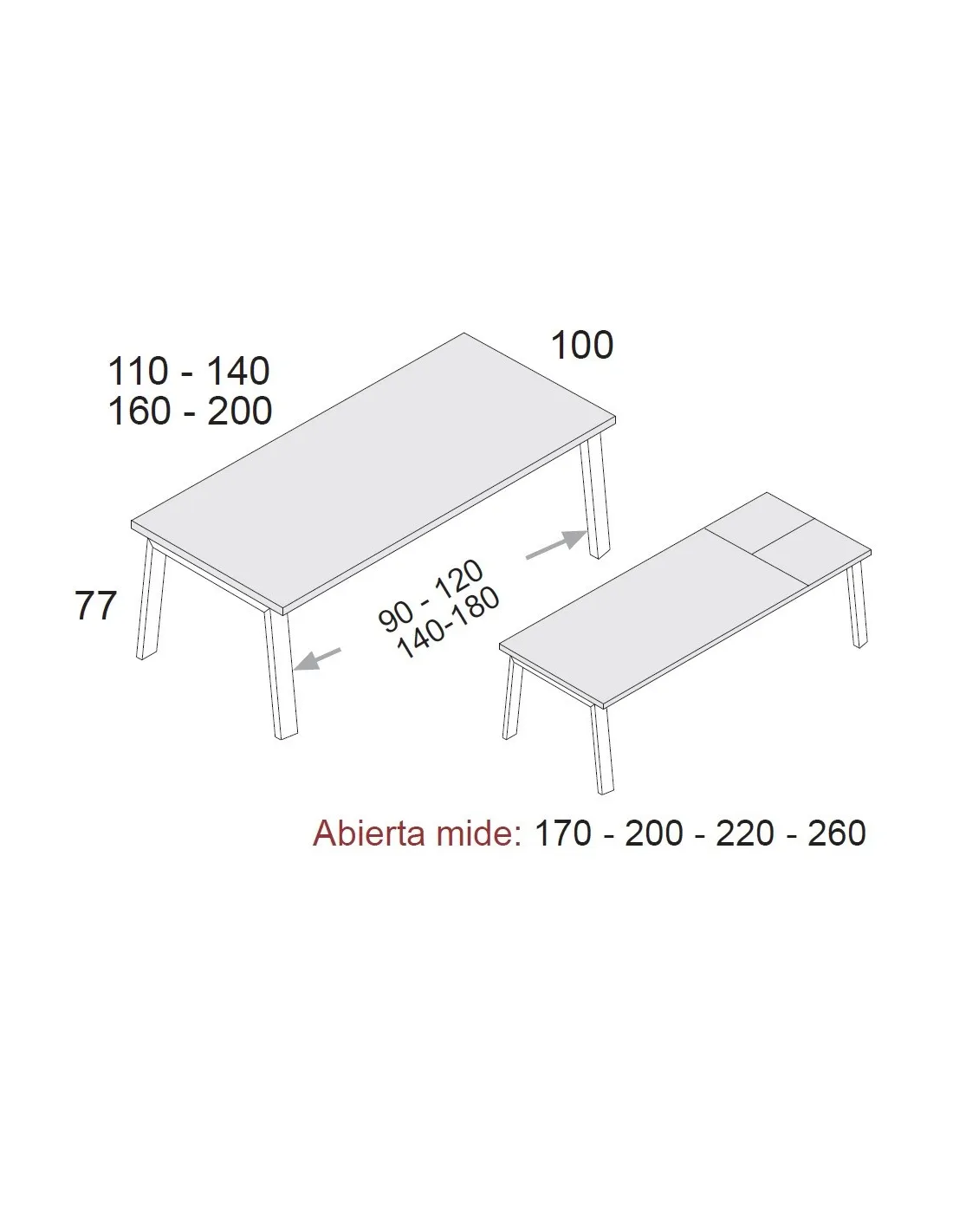 Esta mesa de comedor Arco extensible de carro viene con las siguientes medidas (en cm.):