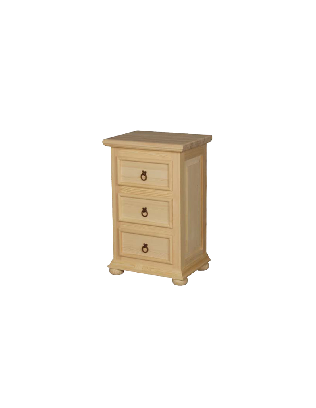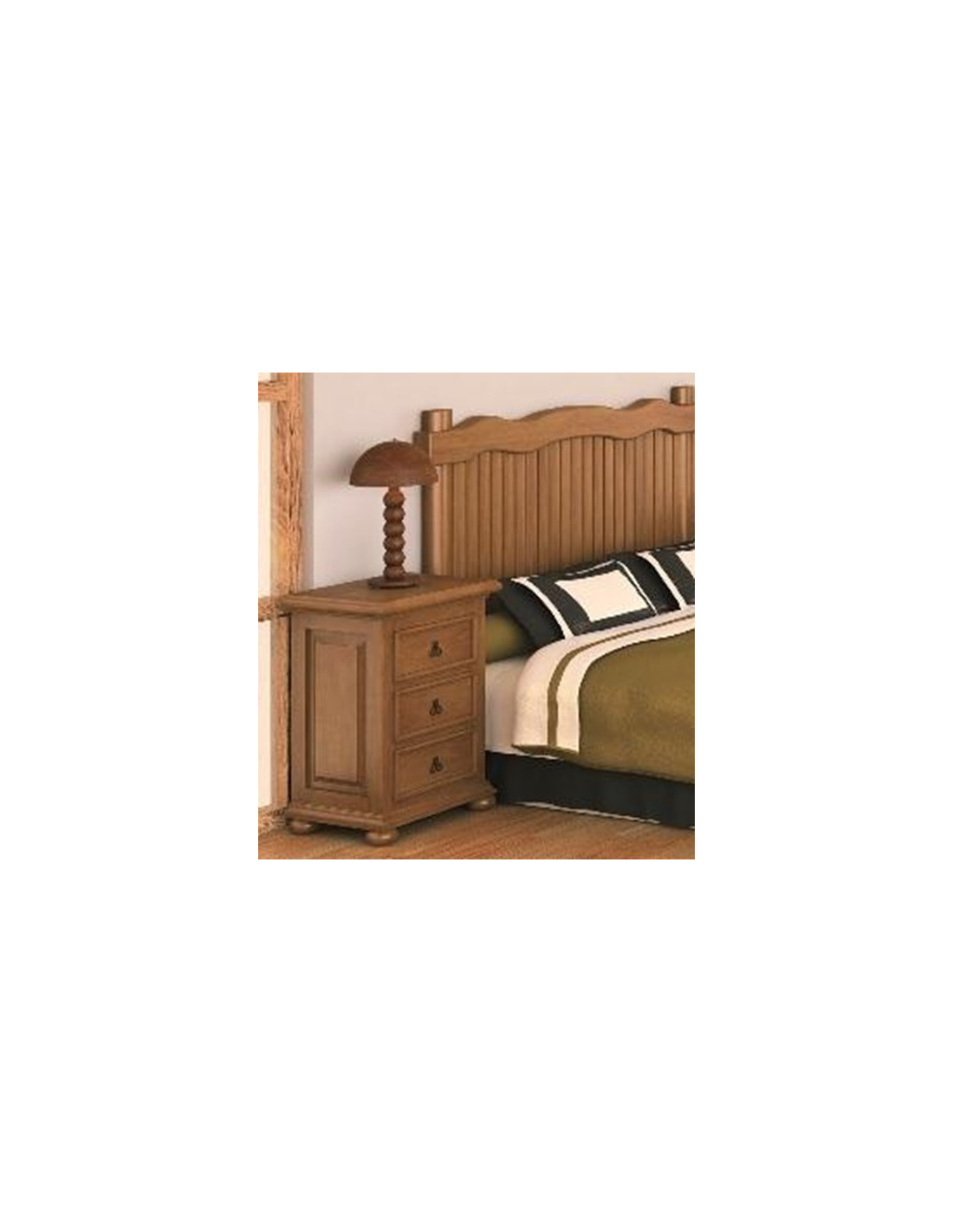 Mesita rústica 3 cajones en madera maciza de estilo mexicano.