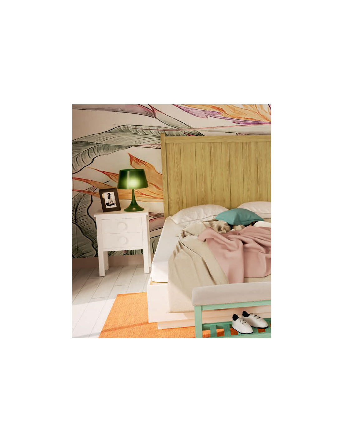 En esta serie de dormitorios rústicos se combinan la madera de su estructura y la forja en sus herrajes y detalles. La madera es de pino, y los herrajes metálicos pintados. Para los acabados se usan terminaciones con acabados barnizados y también, bajo presupuesto, acabados lacados en tonos lisos o barnizados según muestra cliente.