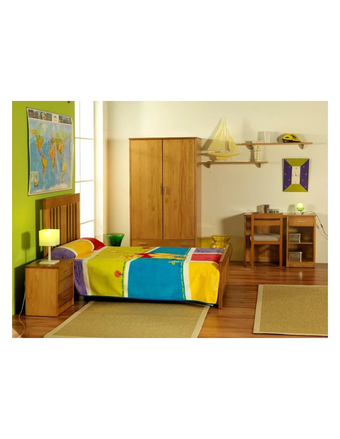 Colección de muebles de dormitorio juvenil colonial en madera maciza de fabricación nacional. Estos muebles de dormitorio destacan por sus materiales y la calidad de sus acabados.
