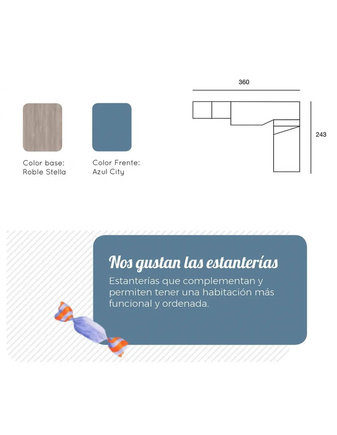 - El color base se aplica por defecto a la estructura de las camas, armarios y módulos bajos, estructuras de estantes y cubos de pared.