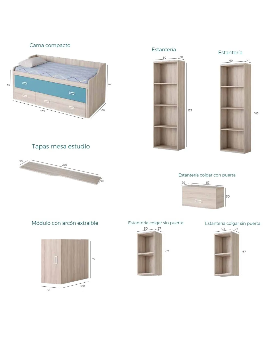 Medidas de este dormitorio juvenil