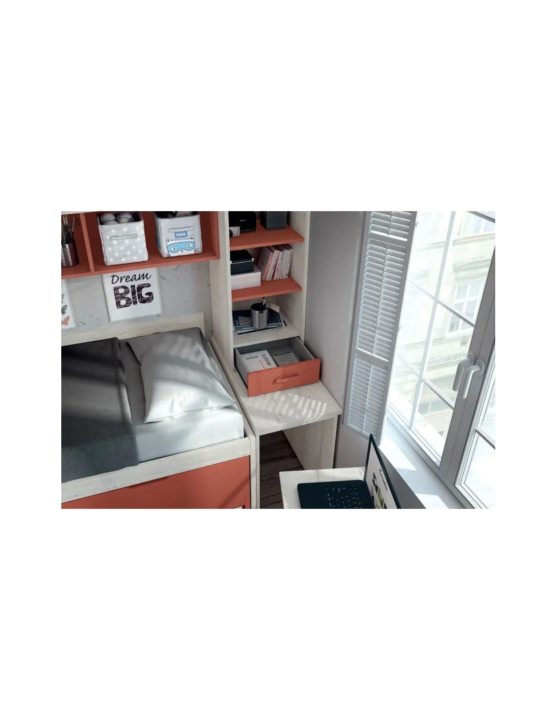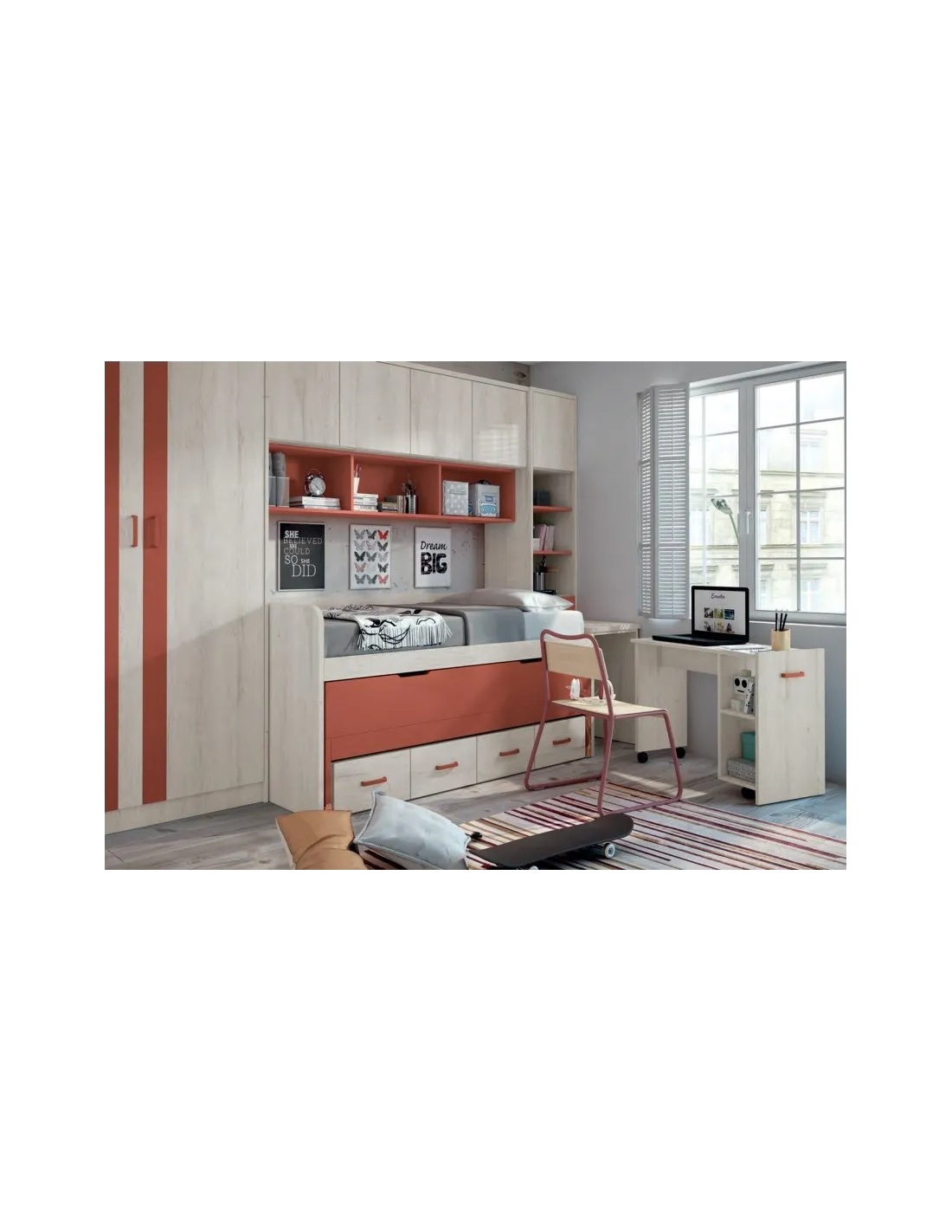 Composición juvenil con 360 cm. de largo. Cama compacta con dos camas de 90x190