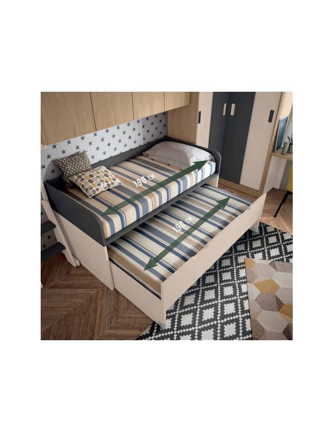 Composición juvenil con 344x285 cm. con cama compacta de dos camas de 90x190