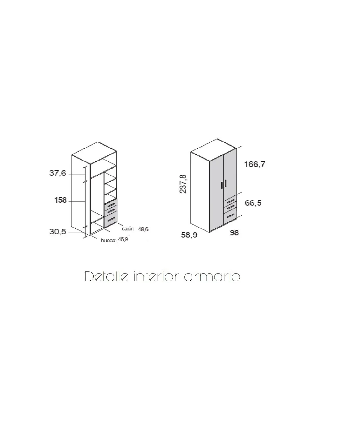 - Armario sinfonier dos puertas dos cajones dos contenedores: 238 x 98 x 59