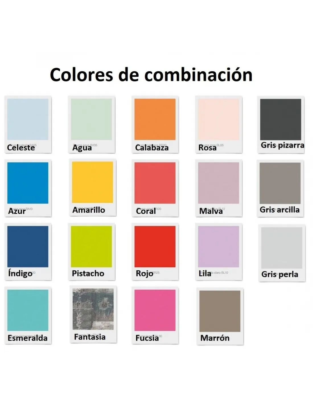 Se pueden combinar más de dos colores en el mismo dormitorio y escoger otros modelos de tirador. Para esto, debe dirigirse, más arriba, a la pestaña "Personalización de producto" y seguir las instrucciones para escribirnos sus preferencias de colores y tiradores para cada módulo, sin coste adicional.