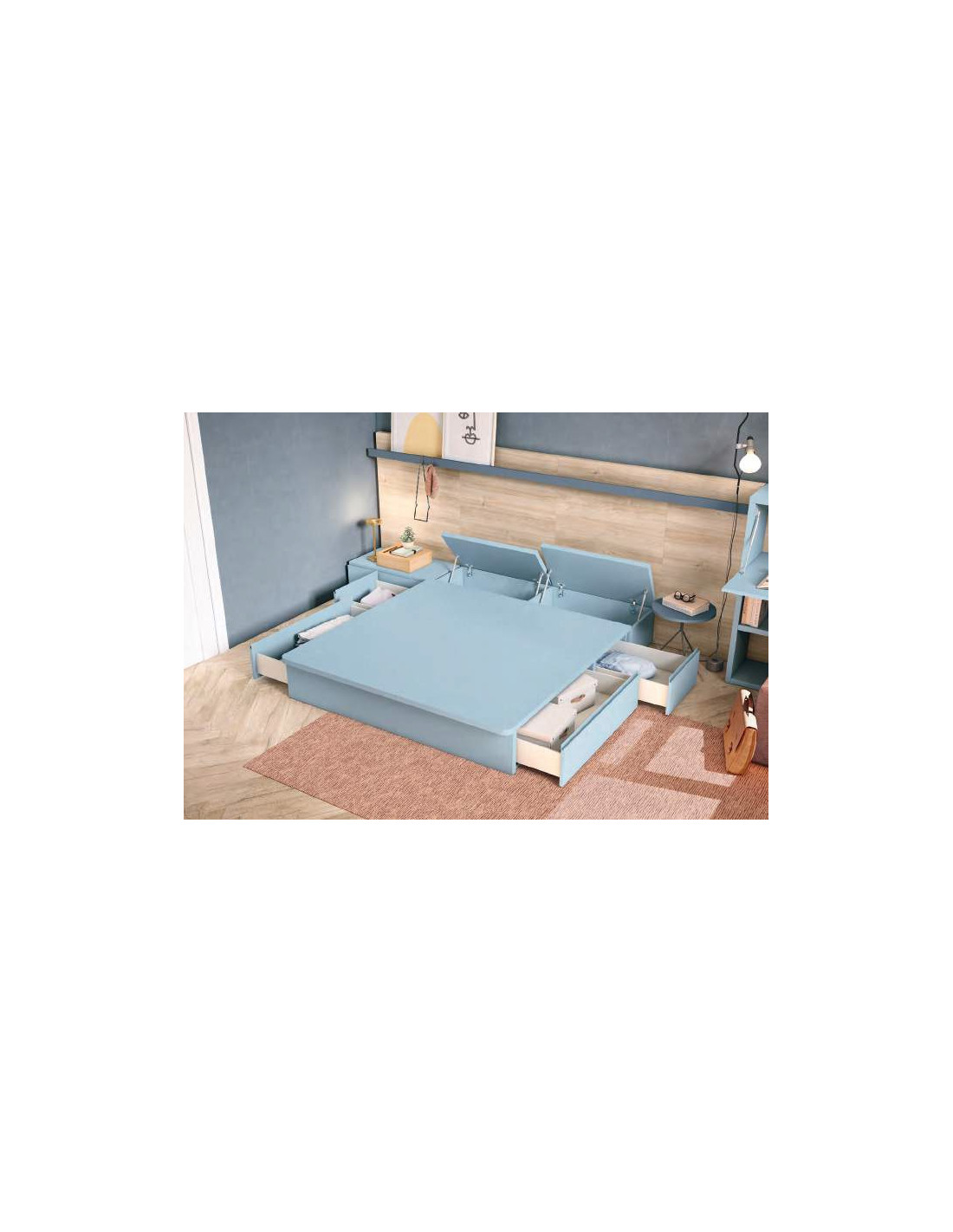 - Cama Tatami con cajones y arcones abatibles: para cama de 150, con un largo total de 159,2 cm. fondo de 199 cm. (para colchón de 190 cm. de largo) y altura 30,1 cm.
