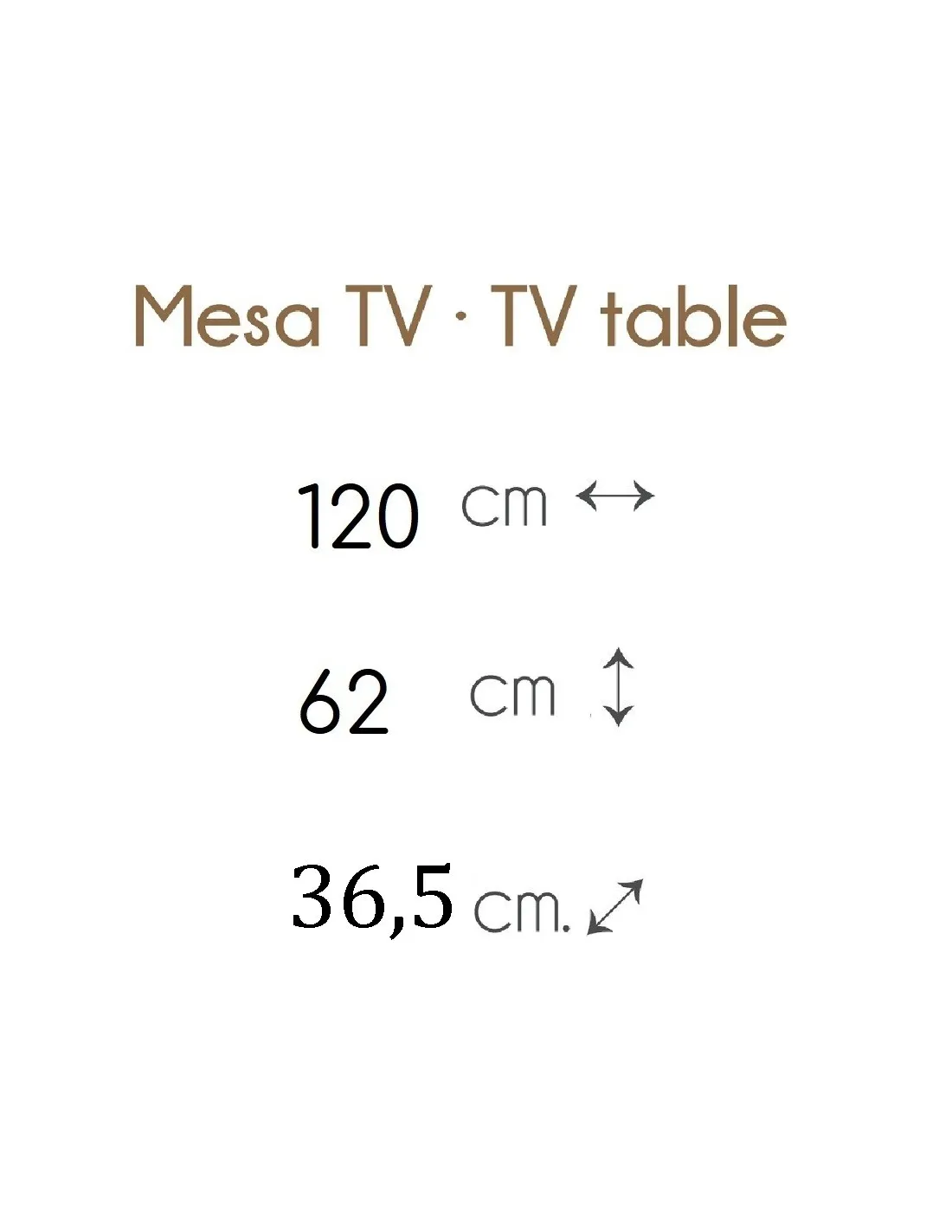 - Mesa de tv dos puertas dos cajones: altura 62 cm. fondo 36,5 cm. y largo 120 cm.