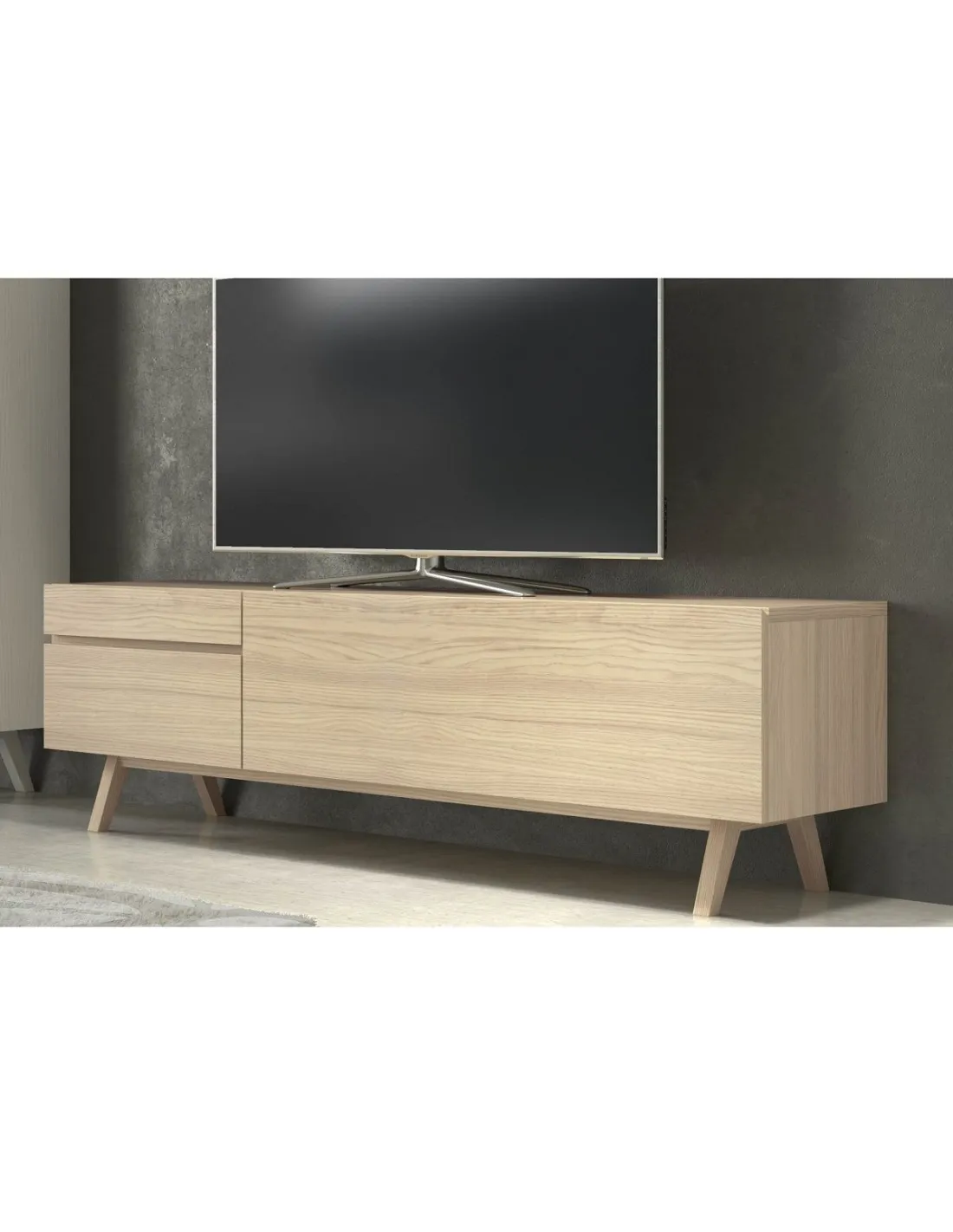 Mueble tv de diseño nórdico en madera maciza de pino con 180 cm. de largo