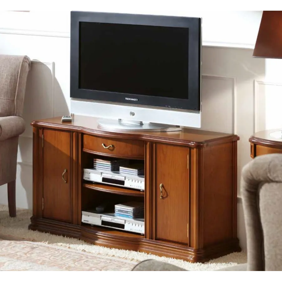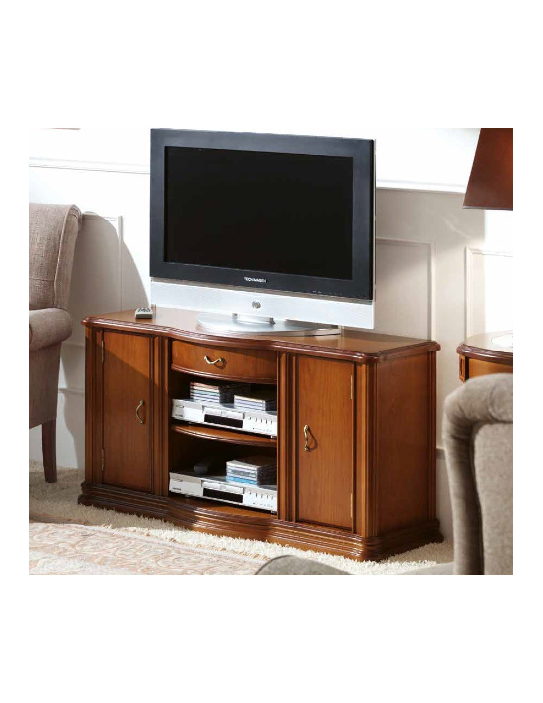 Si buscas muebles clásicos esta mesa de televisión puede ser una gran oportunidad. Estos muebles de lineas sinuosas e inspiración clásica dotan a cualquier rincón de casa de un aire clásico sofisticado, la calidez de sus materiales nobles y la espectacularidad de sus acabados. Muebles en madera de cerezo seleccionada hechos en España.