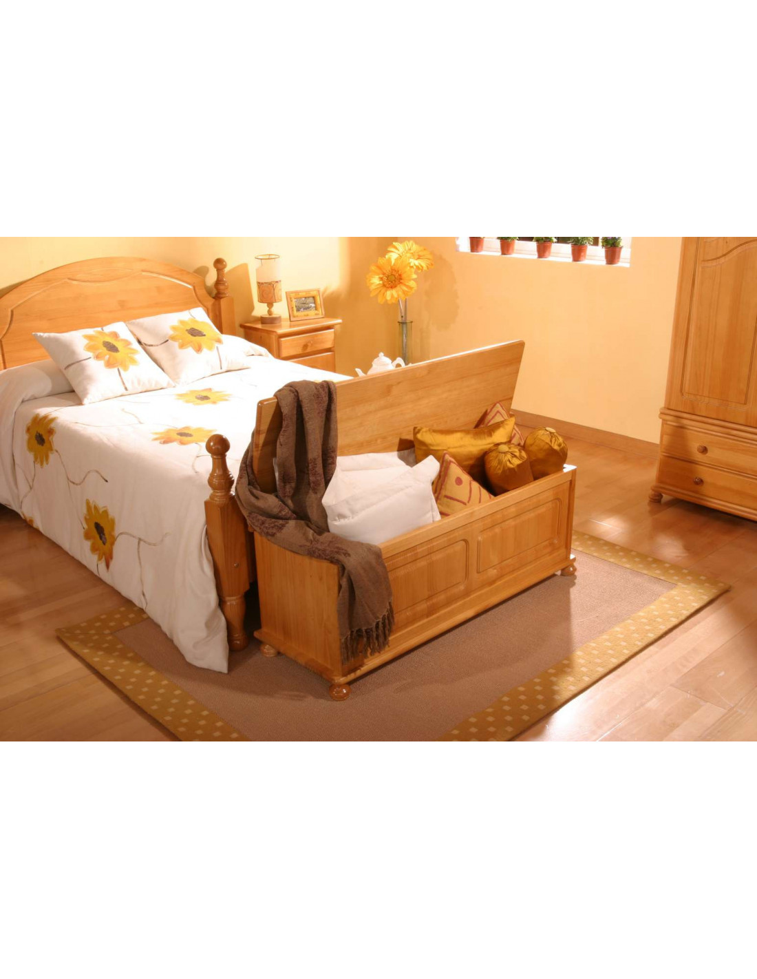 Arcón de dormitorio en madera de pino macizo en colores variados.