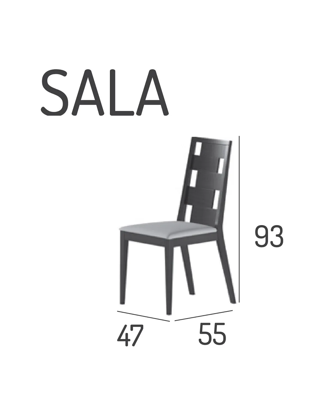 La silla de comedor Sala es de fabricación nacional por lo que, si lo necesita, le CONSEGUIMOS EL MISMO ACABADO DE UNA DETERMINADA MARCA O CUALQUIER COLOR DE LA CARTA RAL. Además, estas sillas permiten elegir tapizados diferentes a los de catálogo y acabados a medida (si está interesado en colores, tapizados o medidas especiales le pedimos que se ponga en contacto con la tienda).