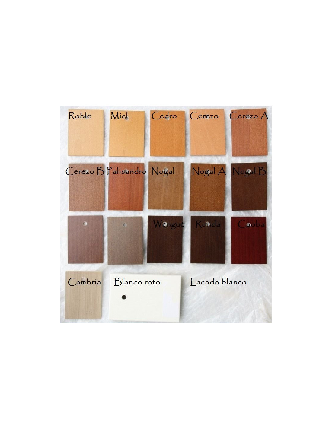 - Acabados lacados y patinados para la estructura: blanco, plata, negro, caoba, palisandro, wengué y cambria.