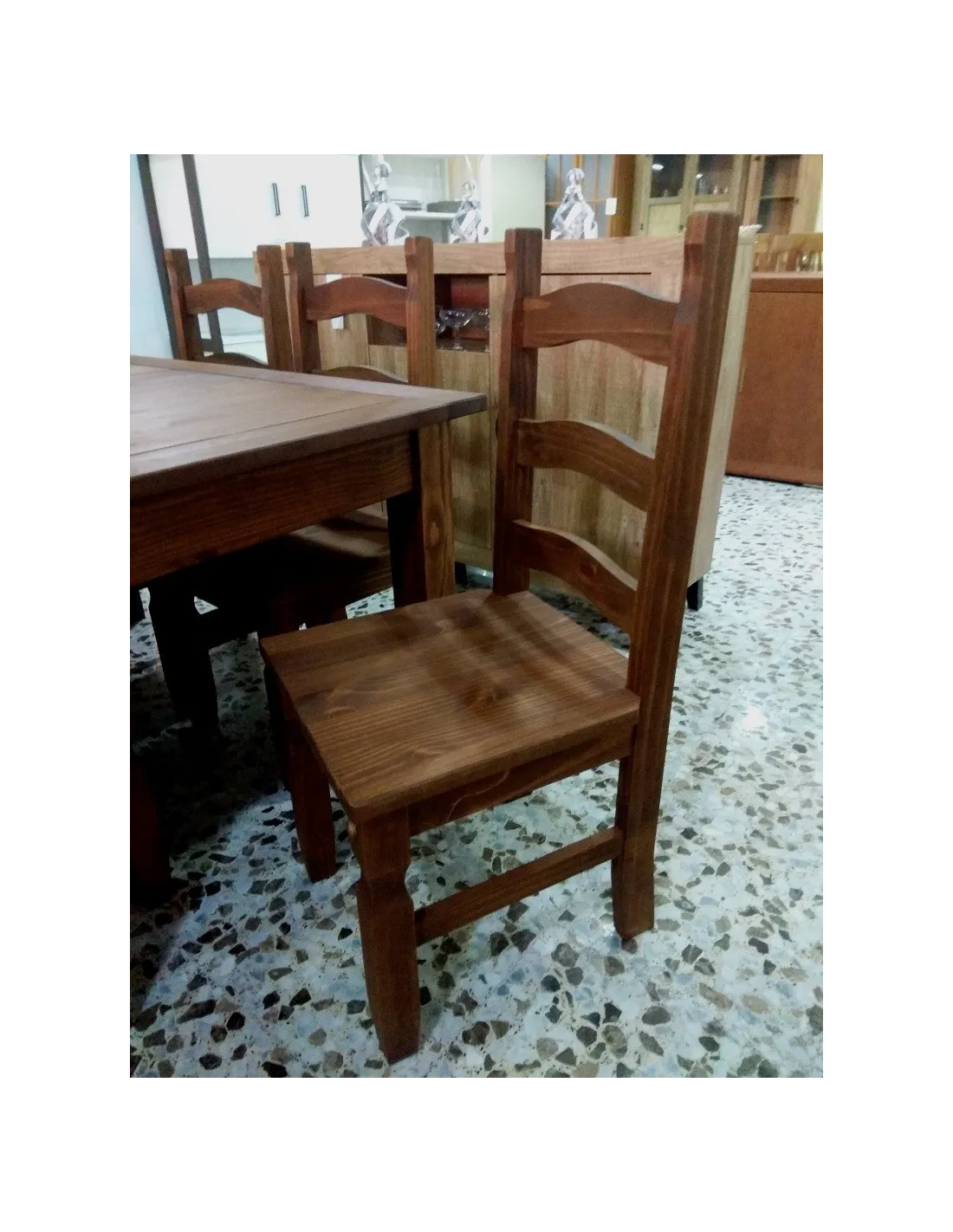 Silla de diseño rústico en madera maciza de pino color nogal oscuro encerado en formato kit
