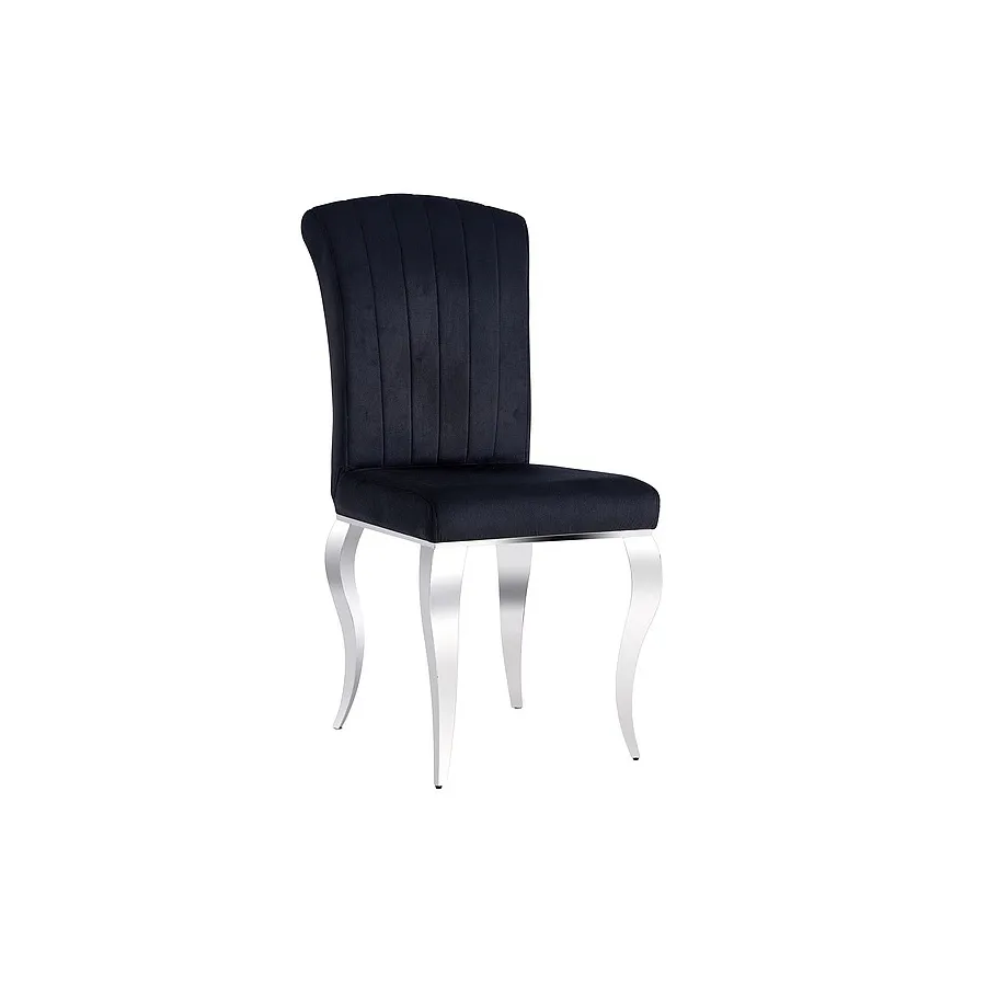 Silla de comedor de diseño tapizado terciopelo negro con estructura cromada.