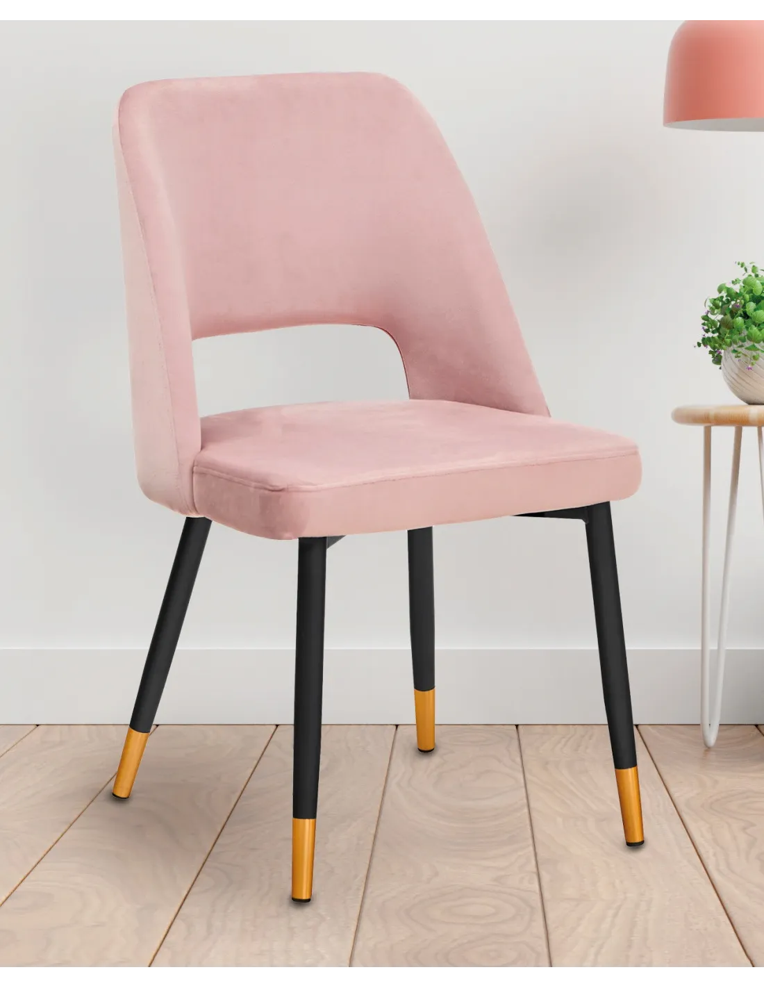 Sillas hechas con la estructura metálica color negro mate y tres tapizados a elegir tipo terciopelo.