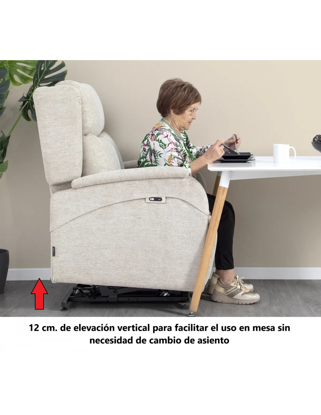 - Mecanismo de elevación vertical y power lift accionado mediante motor. El mecanismo elevador power lift comienza su apertura con una elevación vertical de 12 cm. A continuación entra en acción el mecanismo power lift para ayudar a levantarse la persona por si sola.