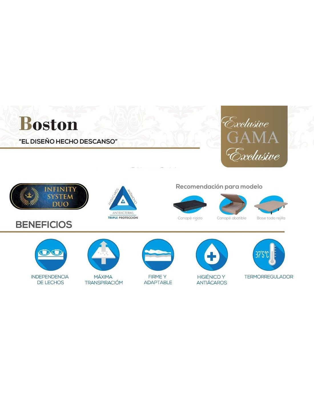 Colchón viscoelástico Boston X6 con sistema top extra confort y Infinity System Duo.