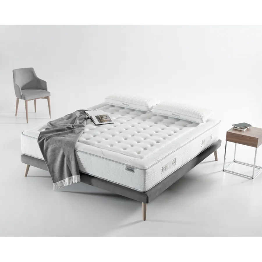 Esta gama de equipos de descanso son aptos para todo tipo de pesos, gracias a los materiales certificados empleados en su fabricación, como el muelle ensacado de 2mm de grosor, y a la viscoelástica de 50KG, con refuerzos laterales en espumaciones de densidades 40 para una mayor durabilidad.