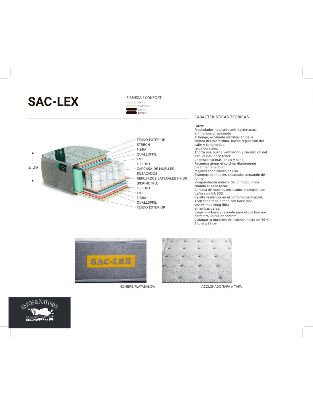 El colchón Sac-Lex cuenta con las siguientes características técnicas: