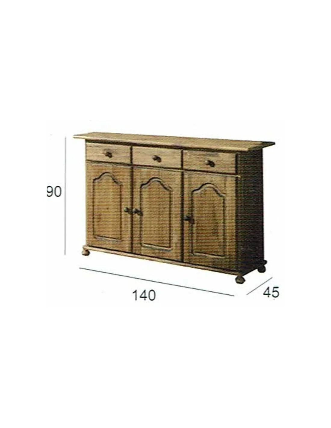 Aparador Provenza con tres puertas y tres cajones en madera de pino macizo con diferentes acabados disponibles
