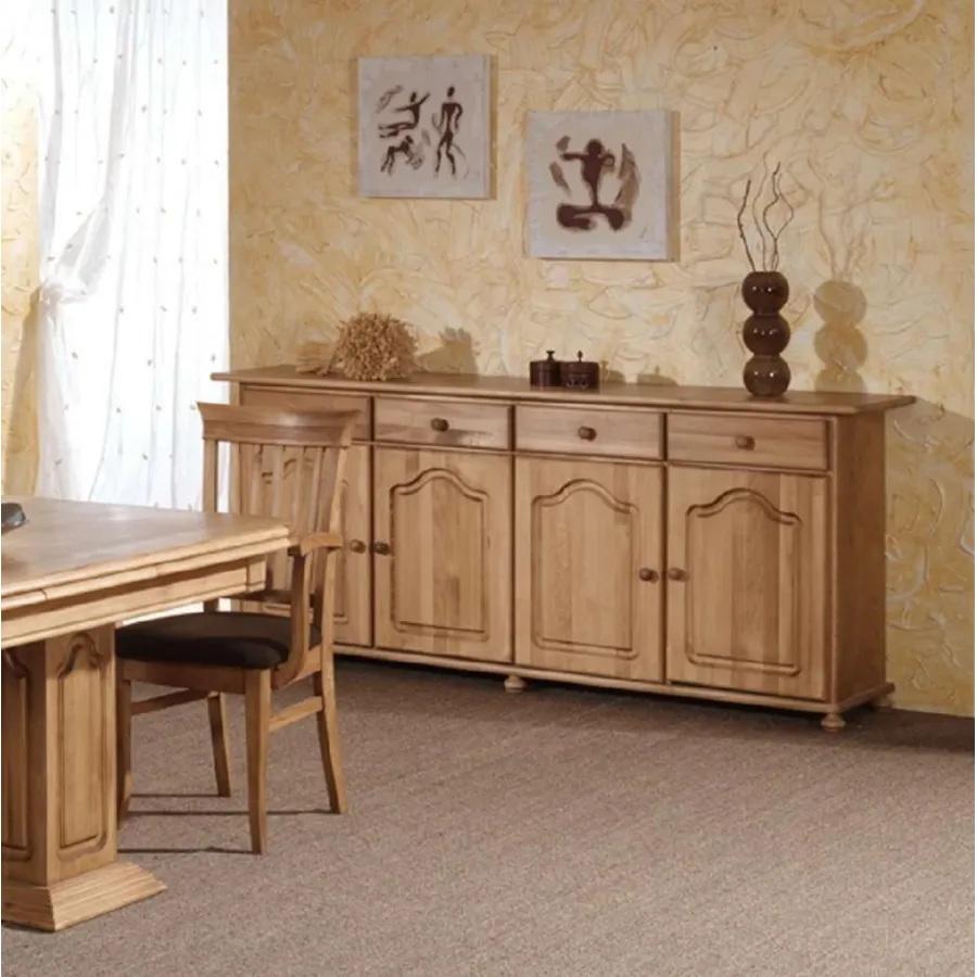 Aparador Provenza con cuatro puertas y cuatro cajones con 180 cm. de largo hecho en madera de pino macizo