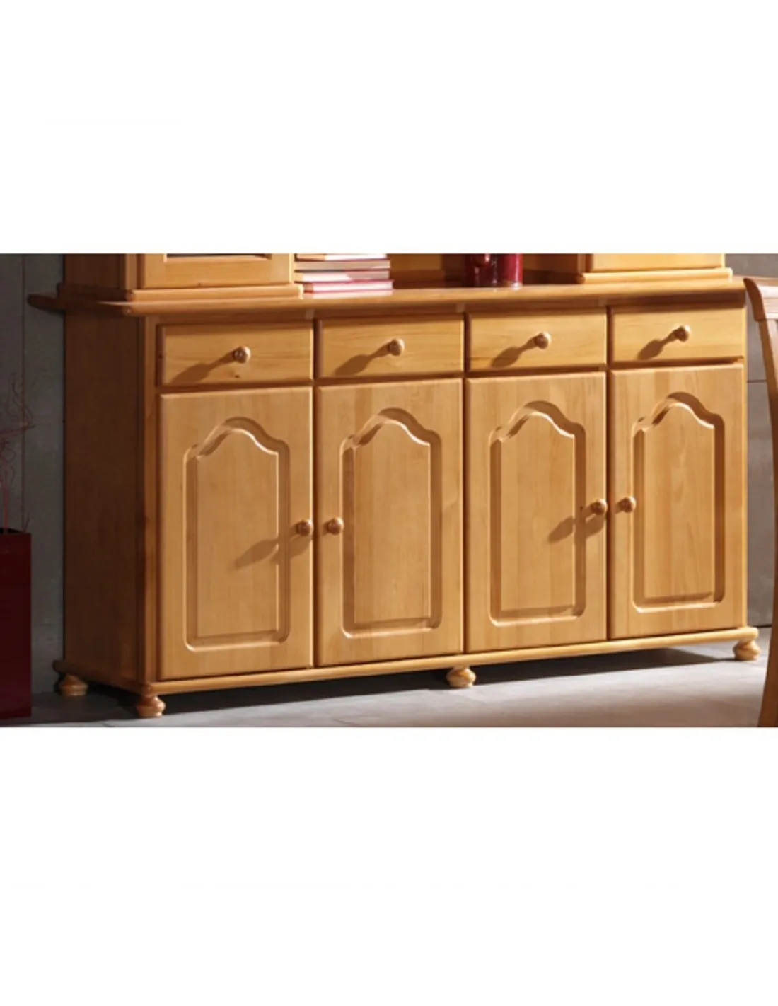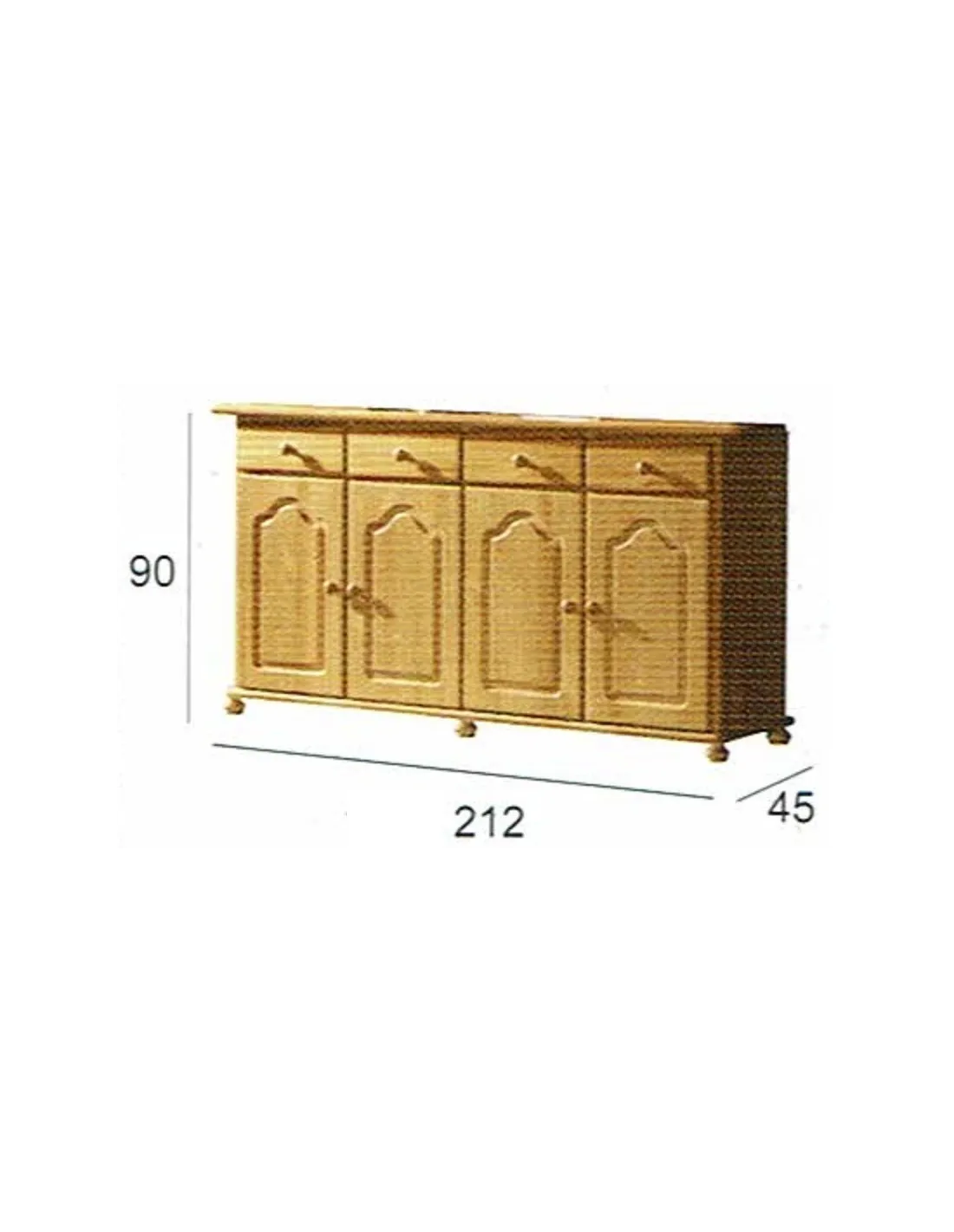 Aparador Provenza con cuatro puertas y cuatro cajones y 212 cm. de largo hecho en madera de pino macizo