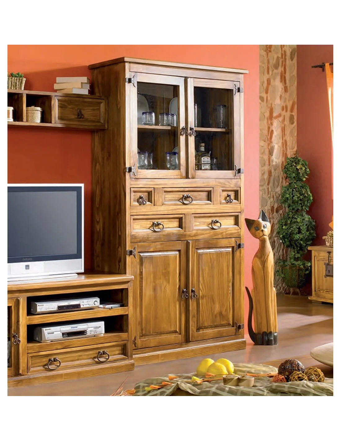 Vitrina 4 puertas en madera maciza de pino estilo mexicano.