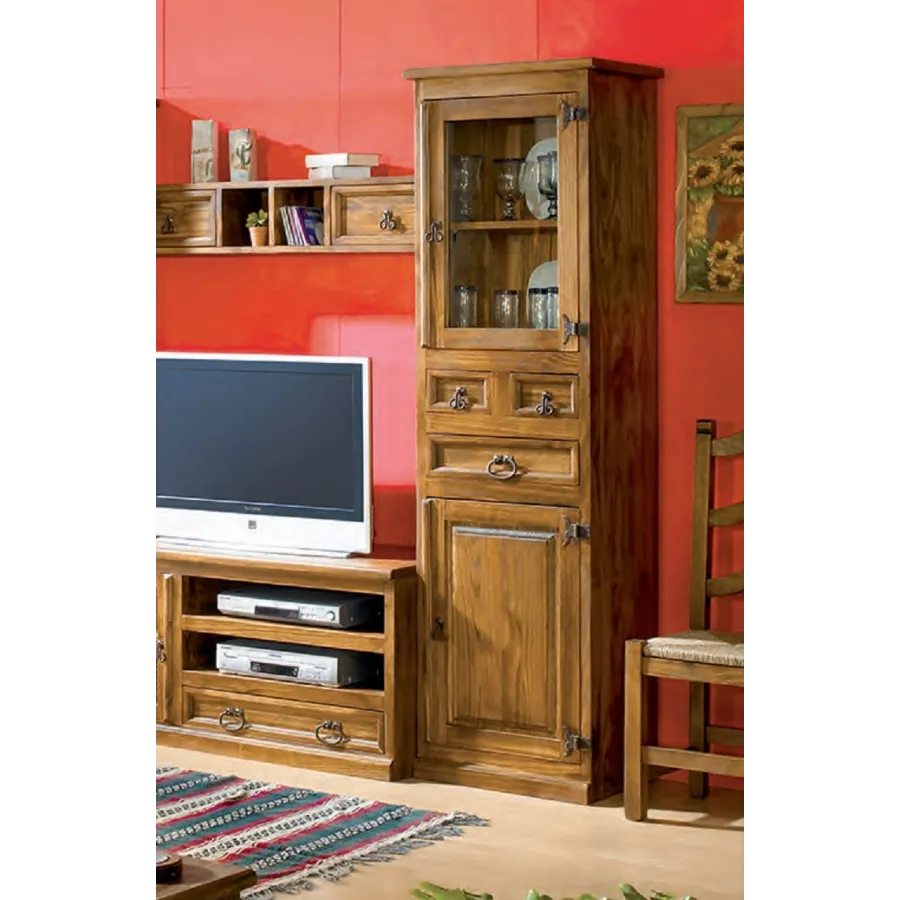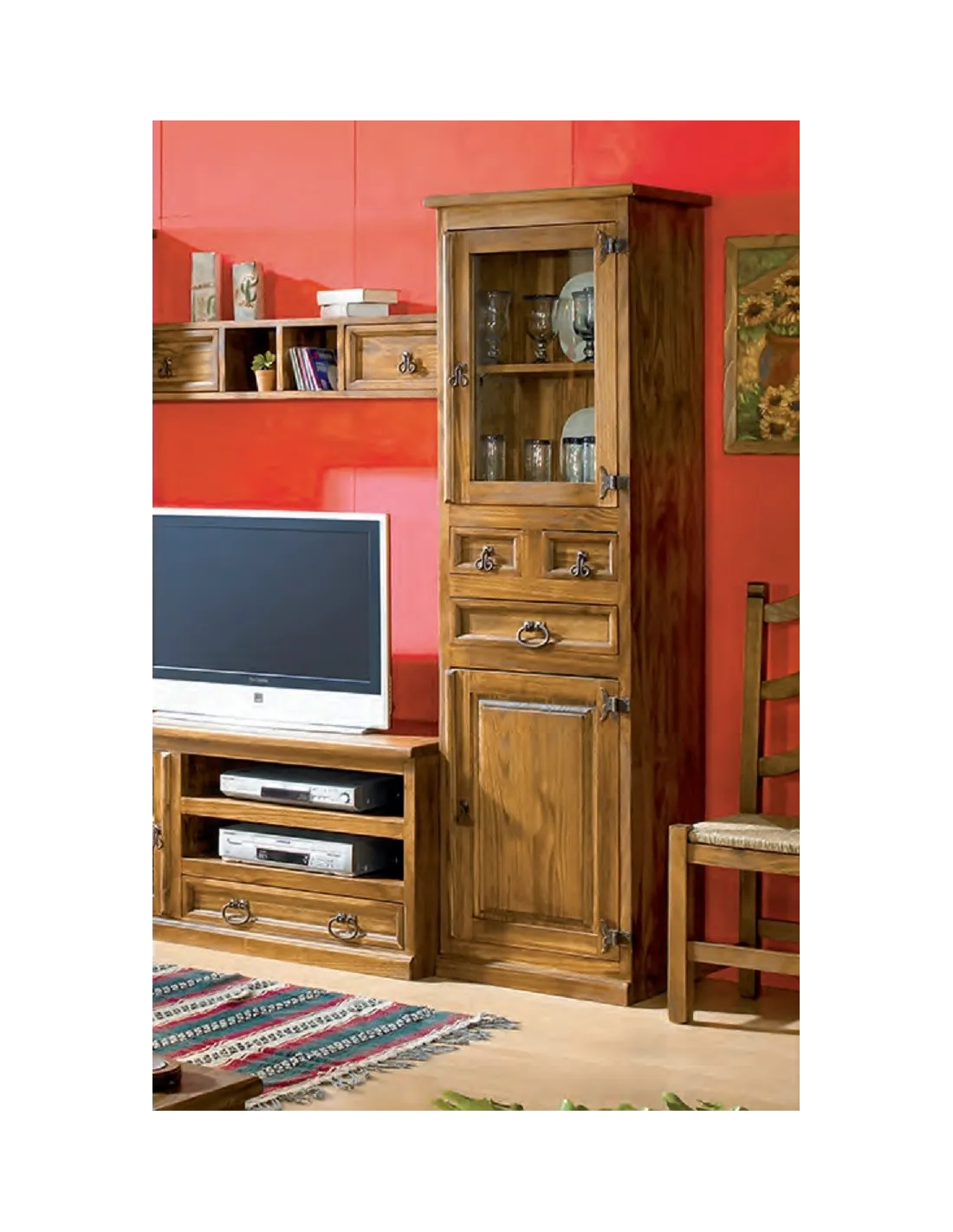 Vitrina lineas rectas en madera maciza de pino estilo mexicano.