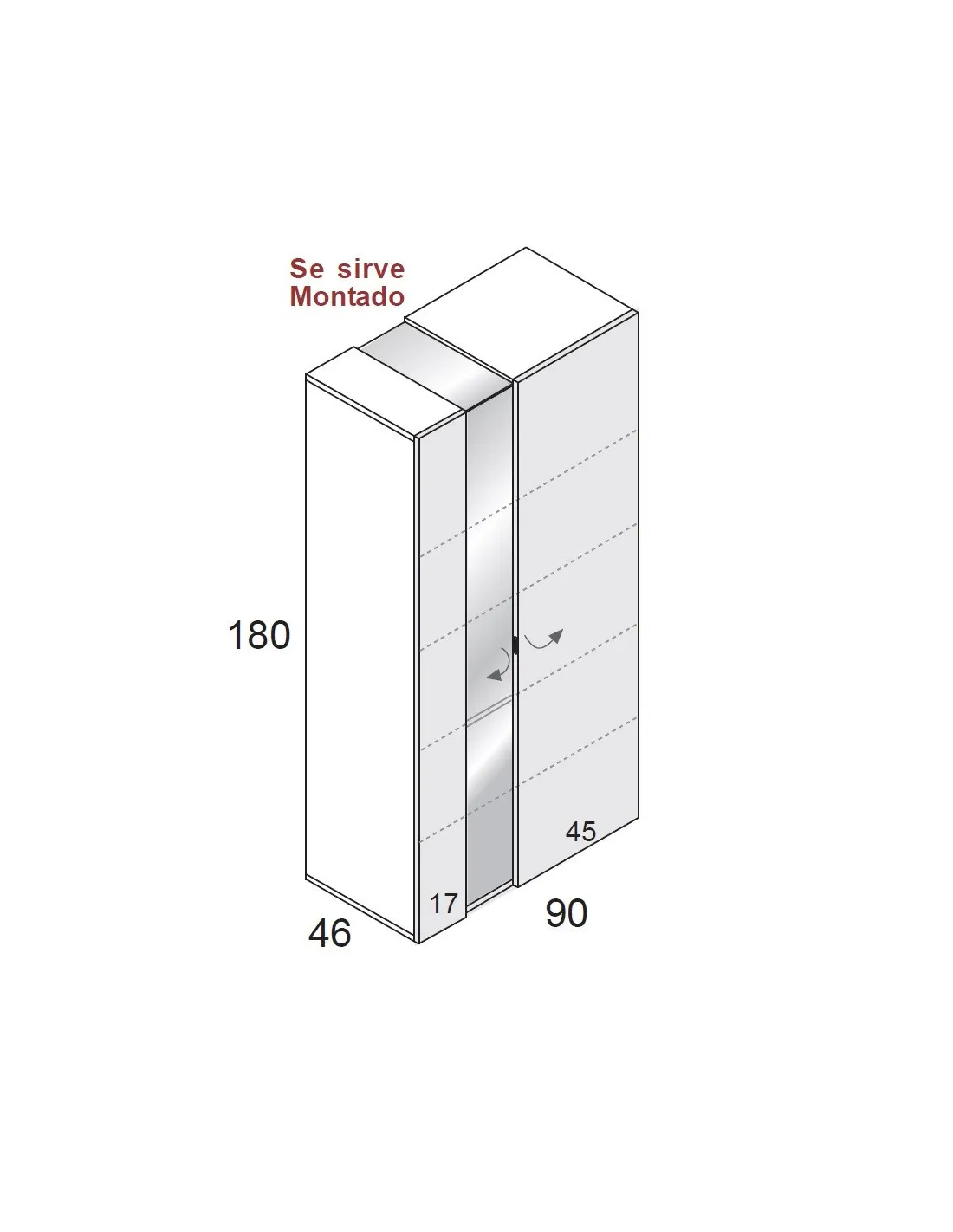 Este mueble vitrina 839B viene con las siguientes medidas en largo x alto x fondo (en cm.): 90 x 180 x 46.
