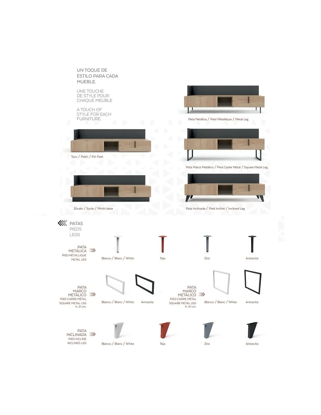 Tenemos opciones de catálogo que no están incluidas en esta ficha de producto pero que se puede optar pr configurar a su manera: tiradores, patas, medidas, módulos independientes... Todos los módulos del catálogo están disponibles para su venta por separado.