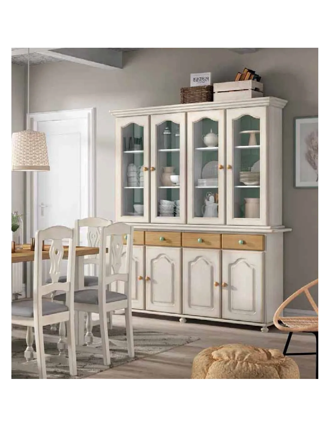 Alacena de comedor en madera de pino macizo en colores variados modelo Provenza 4P 180 cm.