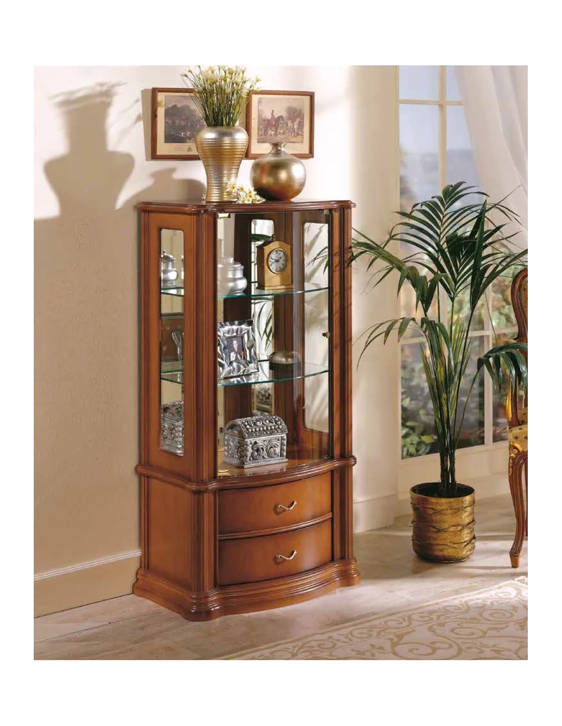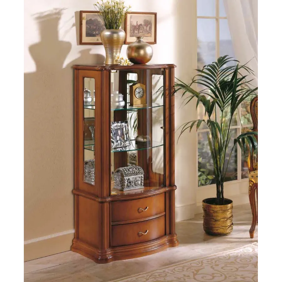 Vitrina baja dos cajones en madera cerezo de diseño clásico