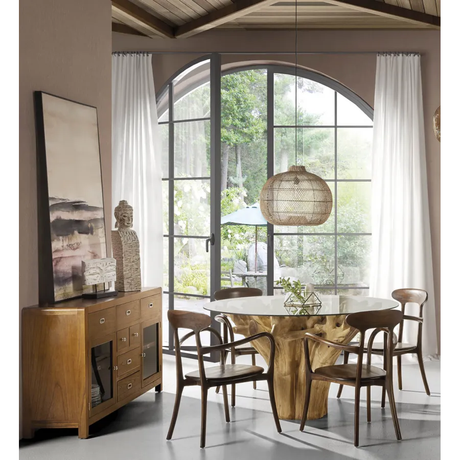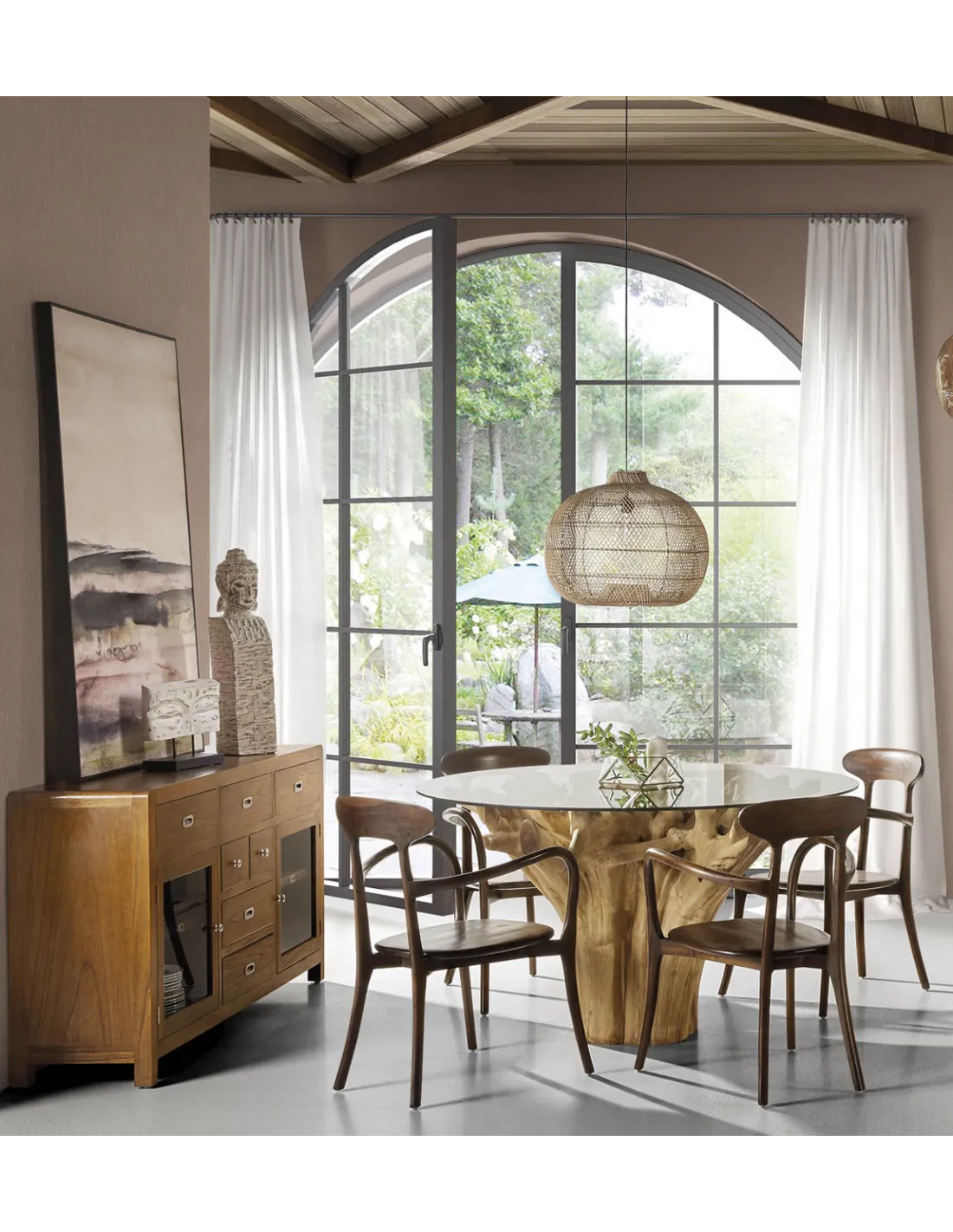 Muebles coloniales con un marcado diseño en madera de Mindi. Colección de muebles funcionales de lineas curvas y diseño cálido y acogedor, con materiales exóticos y acabados que encajan en cualquier rincón de casa.