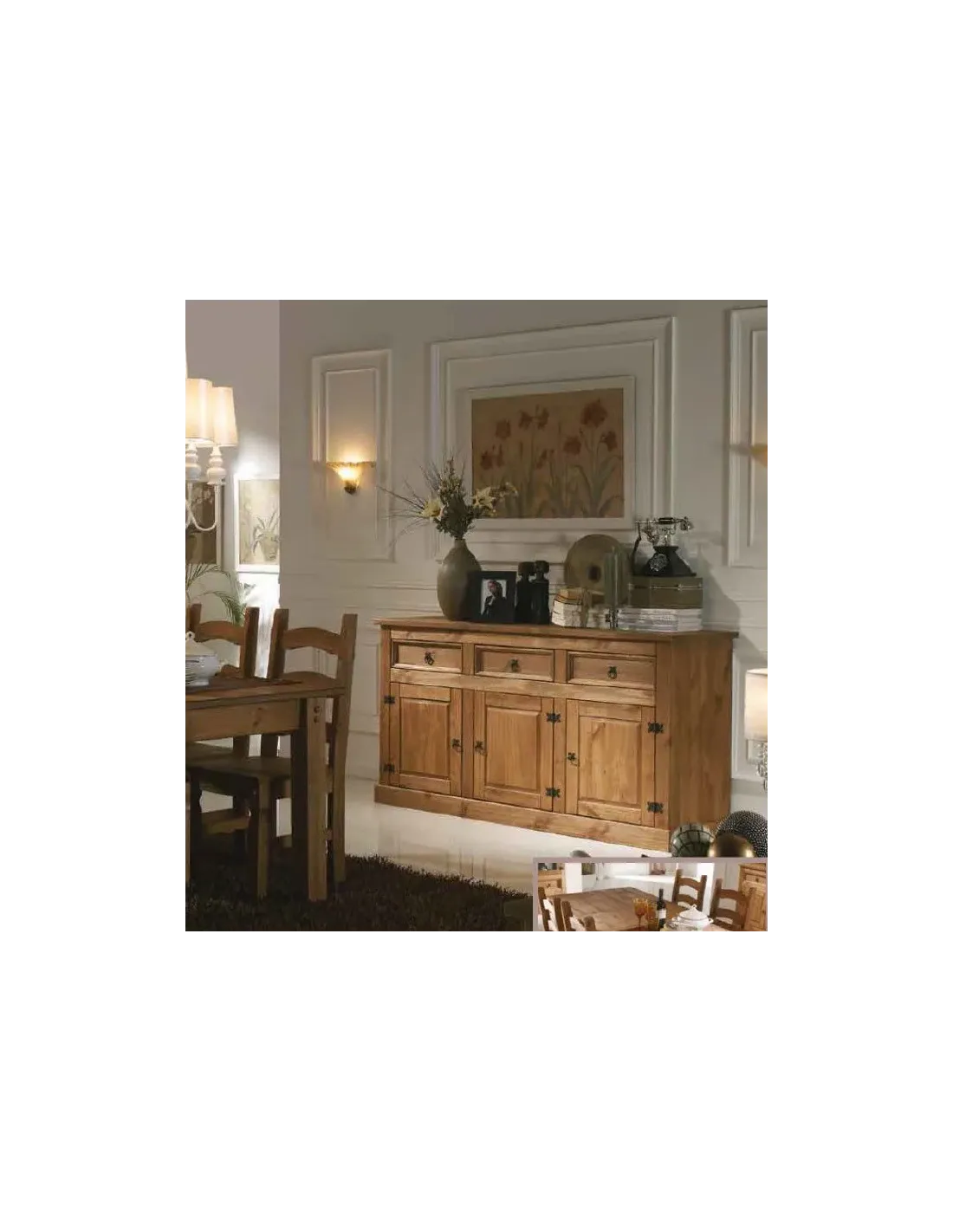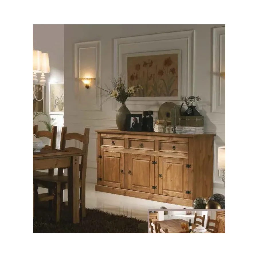 Mueble aparador para salón-comedor de estilo rústico de importación. Hecha en madera de pino macizo.